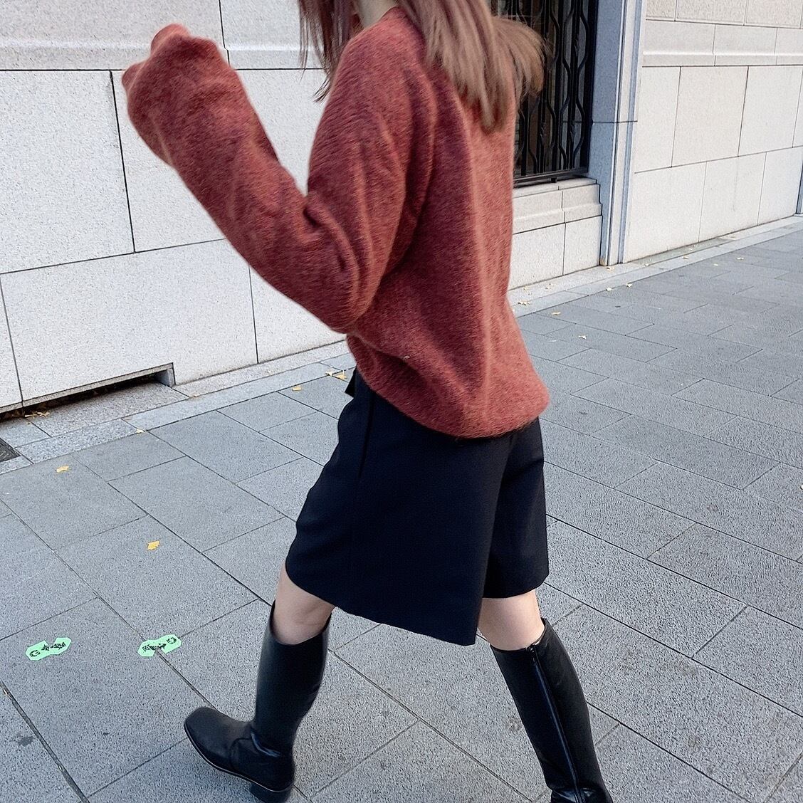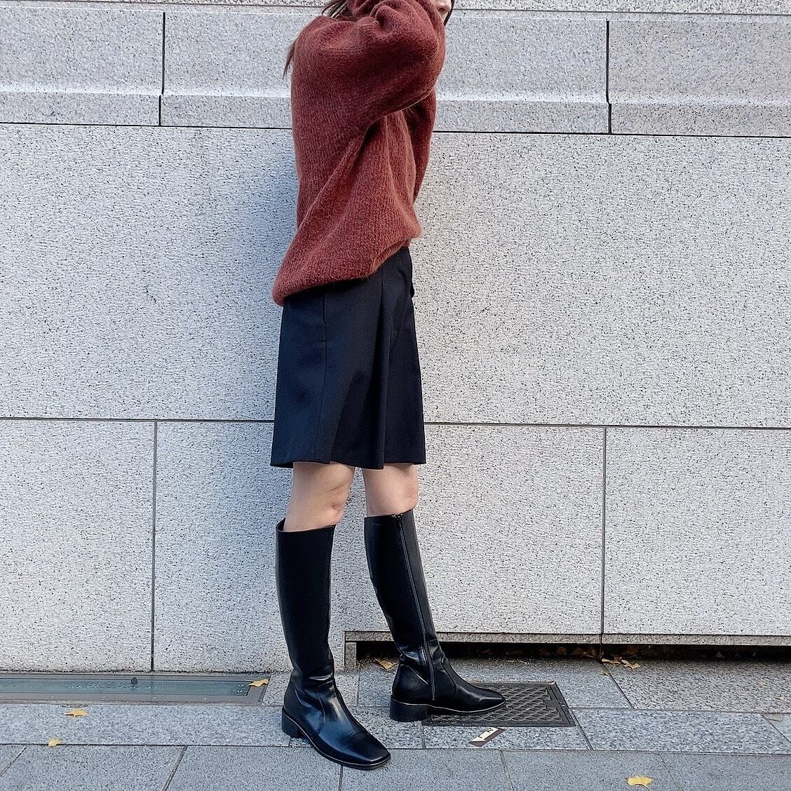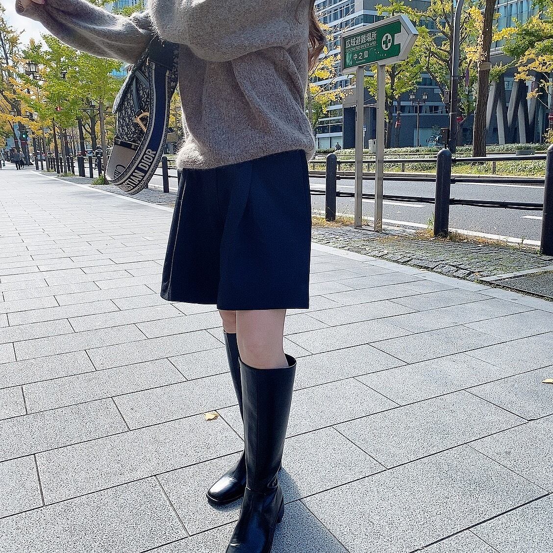 ロングブーツと合わせるのが、今年らしくオシャレな着こなしでとってもおすすめです。