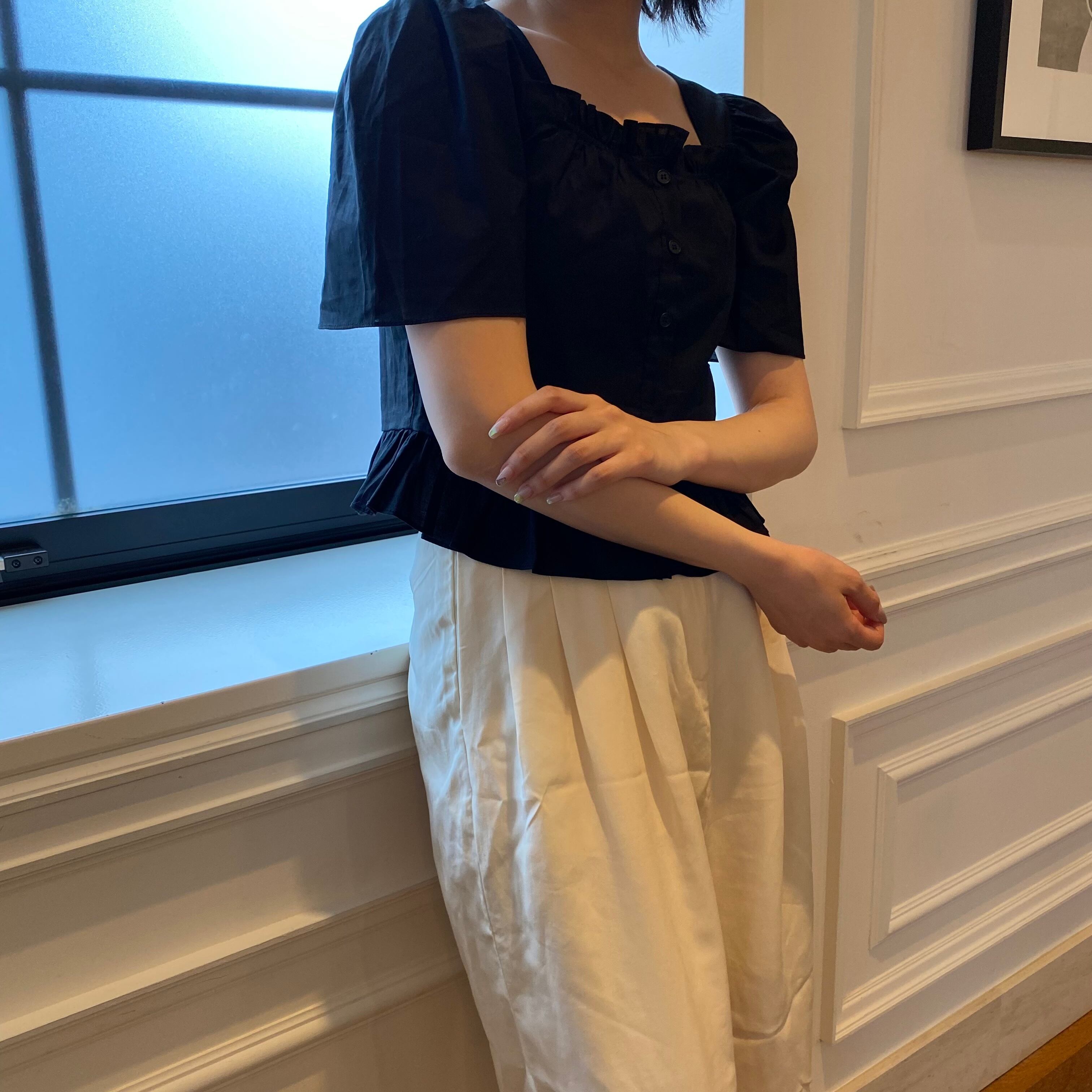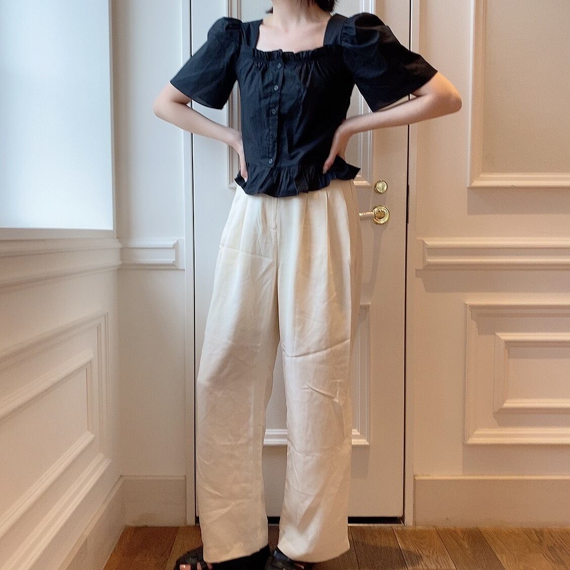 ウエストタックのきれいな縦落ちシルエットで腰回りをカバーしてくれ、クールな女性を演出してくれます。