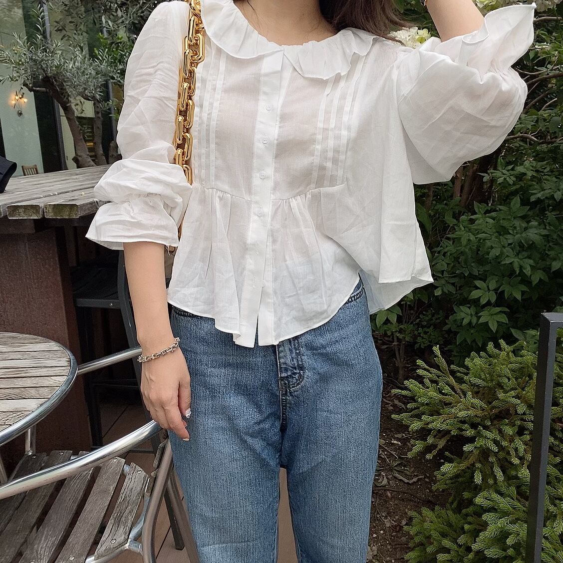一枚で着るのはもちろん、アウターに響かない薄手素材なので、重ねて着てもごわつかずポイントの襟を出してコーデのアクセントにも一役買ってくれます。