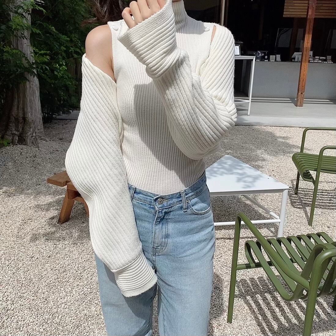 ノースリーブのニットとたっぷりボリューム感のあるボレロがセットになっており、個々での着用も映える一枚。