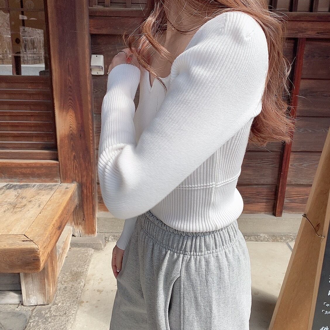 デコルテとネックラインを綺麗に見せてくれるハート型のディテールが愛らしいポイントになっています。