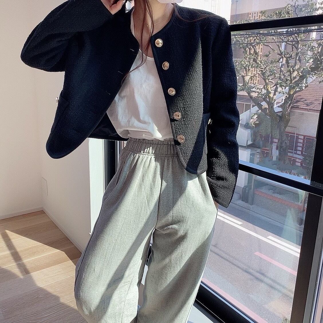 一般のツイードジャケットに比べて気軽に着用できるデザインなので、デイリーアイテムとして活躍間違いなしです。