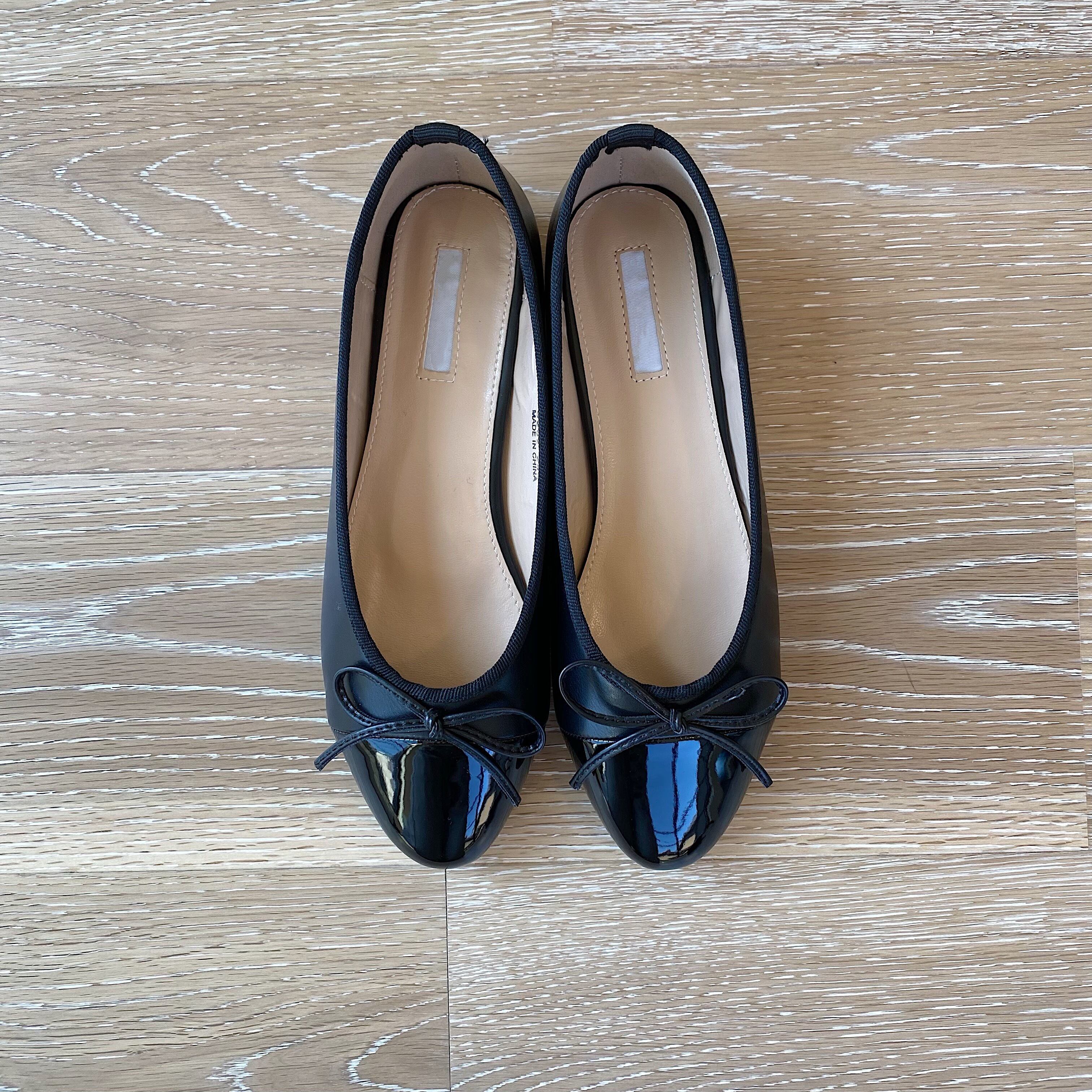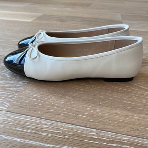 足元を上品に仕上げてくれるクラシックな配色のリボンフラットシューズ。 柔らかい素材で履き心地も良く、つま先も痛くなりにくいので、デイリーにたくさん愛用して頂けます。 丸みを帯びたラウンドトゥーにシンプルなリボンディテールと、エナメル素材の組み合わせがオシャレに見せてくれるポイントです。 合わせるアイテムを選ばず、使いまわせる春おすすめの一足。 素足に合わせると女性らしい印象になり、クロップド丈のパンツにソックスと一緒に着用すると、今年らしくカジュアルに合わせて頂けます。 ┈┈┈┈┈┈┈┈┈┈┈┈┈┈┈┈┈ 《color》white , black 《size》23㎝ 23.5㎝ 24㎝ 24.5㎝ 25㎝ 《ヒール》1㎝ *着用モデル 163cm *記載のサイズ詳細は平置きサイズの為、多少の誤差が生じる場合がございます。 《素材》合皮 ┈┈┈┈┈┈┈┈┈┈┈┈┈┈┈┈┈ ご購入前にaboutと特定商法に基づく表記を必ずお読みください。