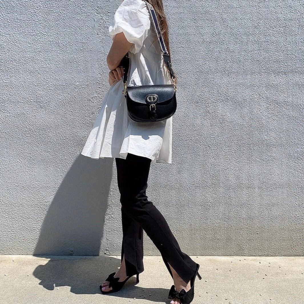 ミディアムワンピースやチュニックブラウスなどのスタイリングにも馴染む万能アイテムです。