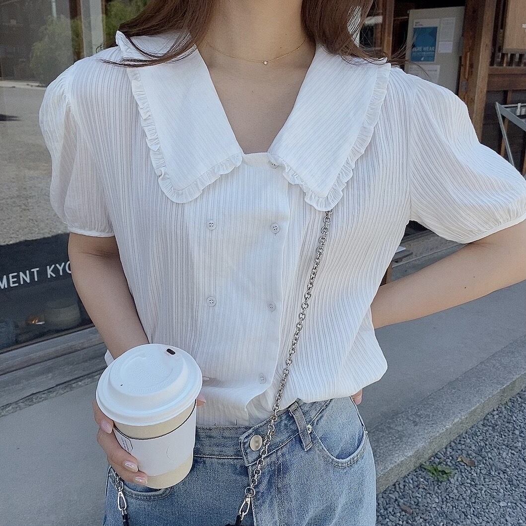 Double frill blouse / white(6月上旬〜中旬頃発送予定)
