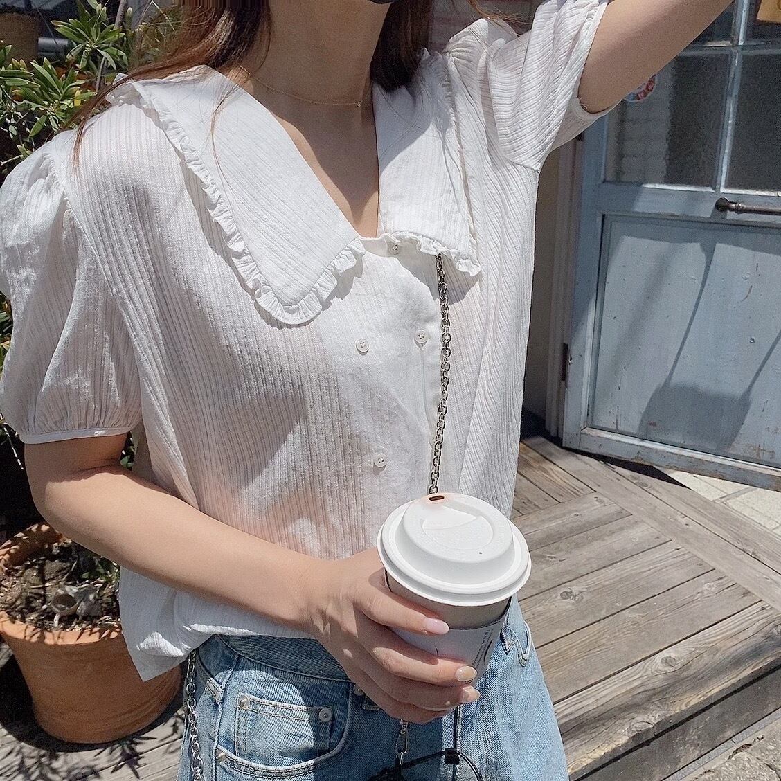 大きな襟元とパフスリーブがキュートで可愛く、愛され女性へと導いてくれます。