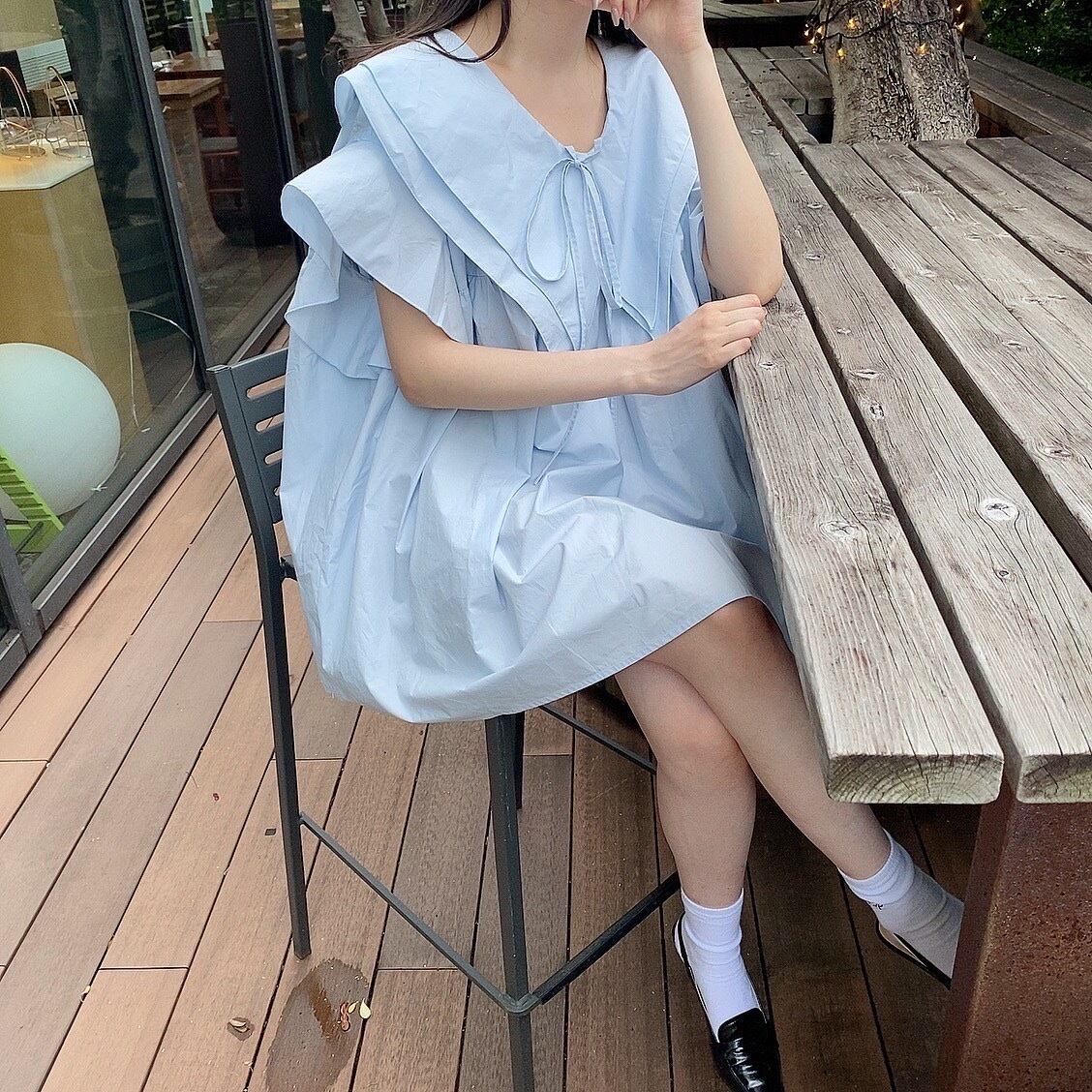 Double collar frilltunic op / Blue(7月中旬頃発送予定)