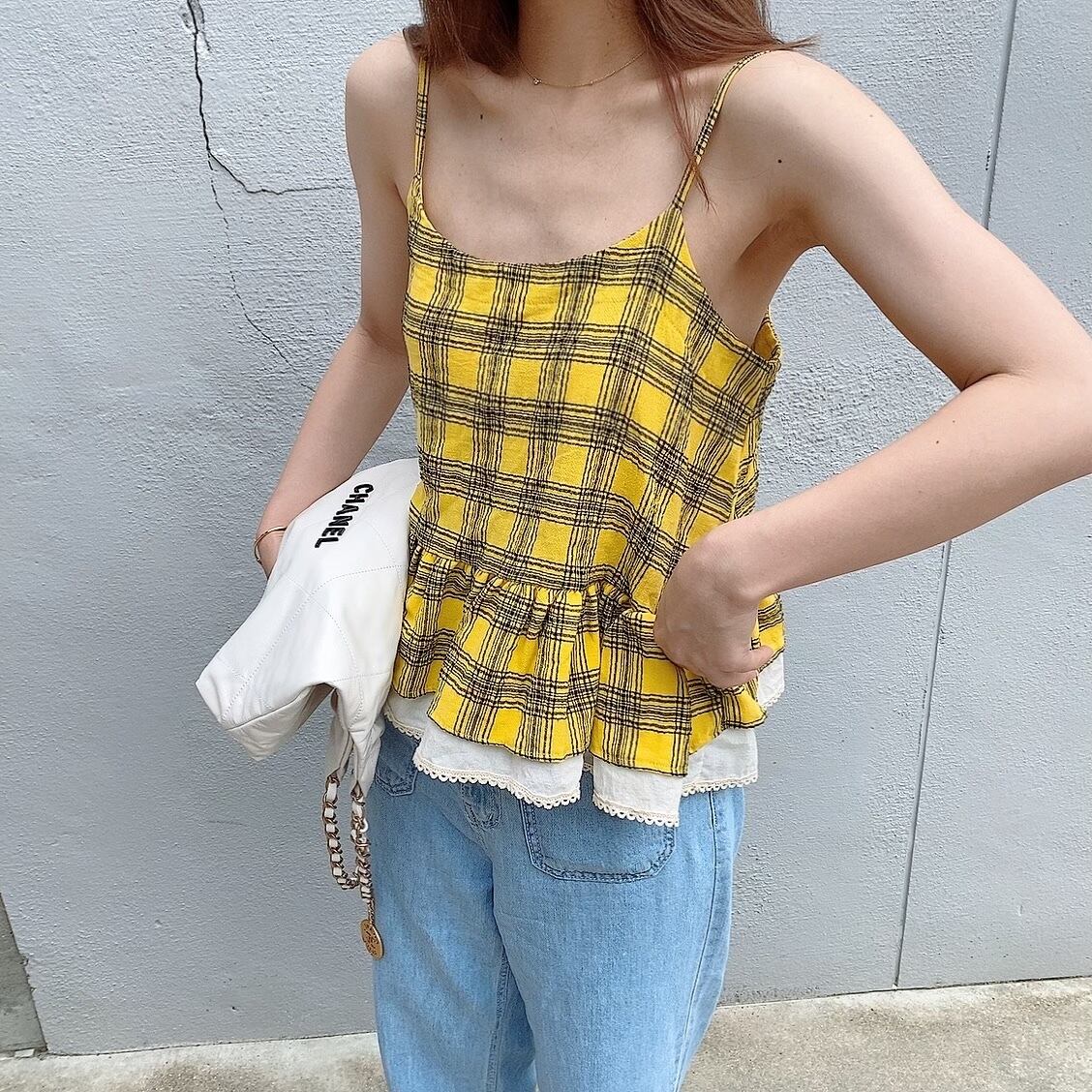 Check tiered frill camisole /yellow (7月中旬頃発送予定)