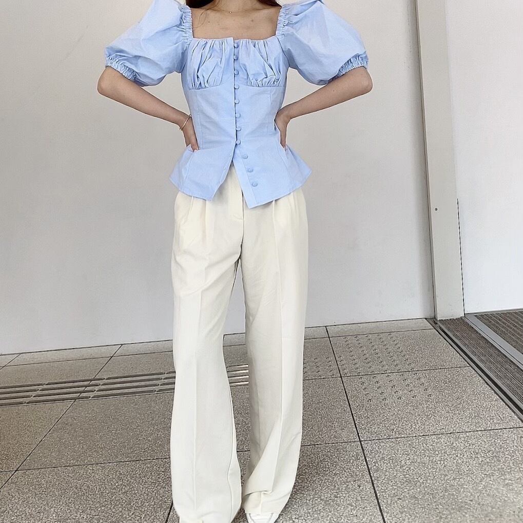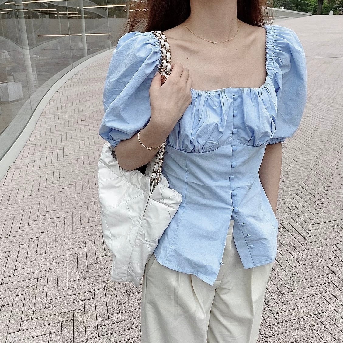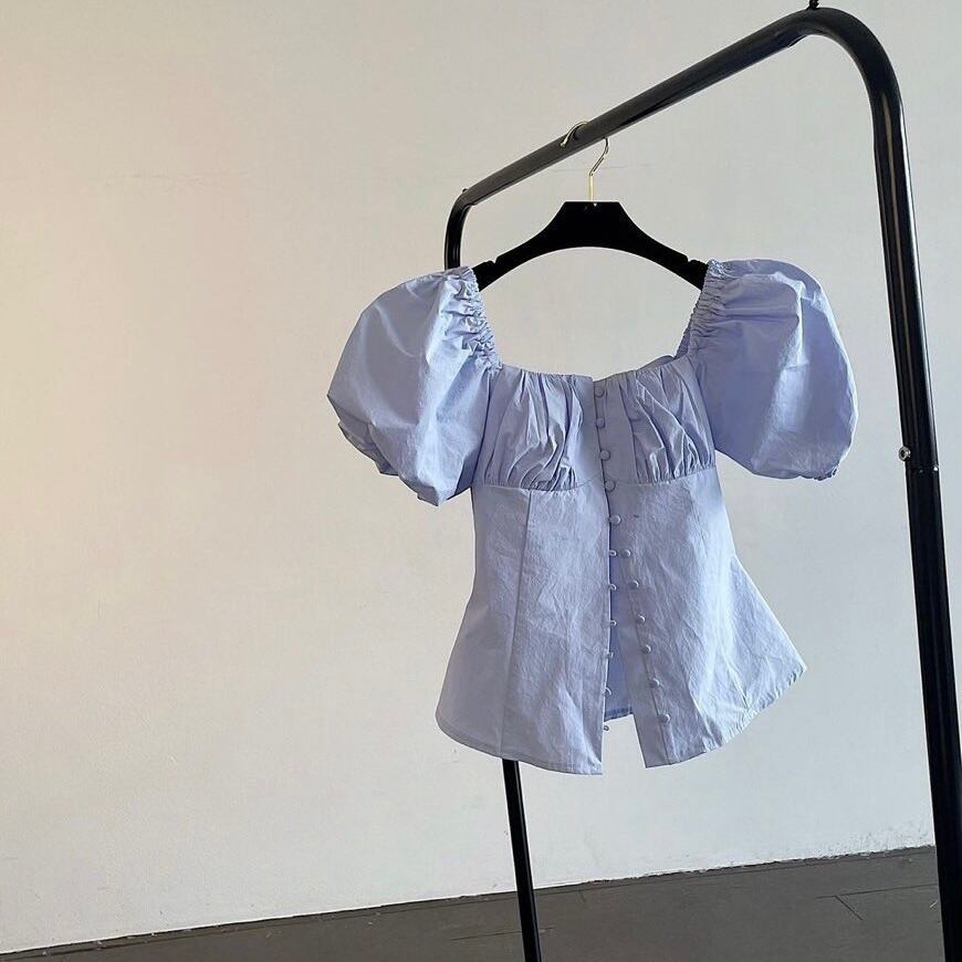 Shirring puff tops/ Blue(7月中旬頃発送予定)