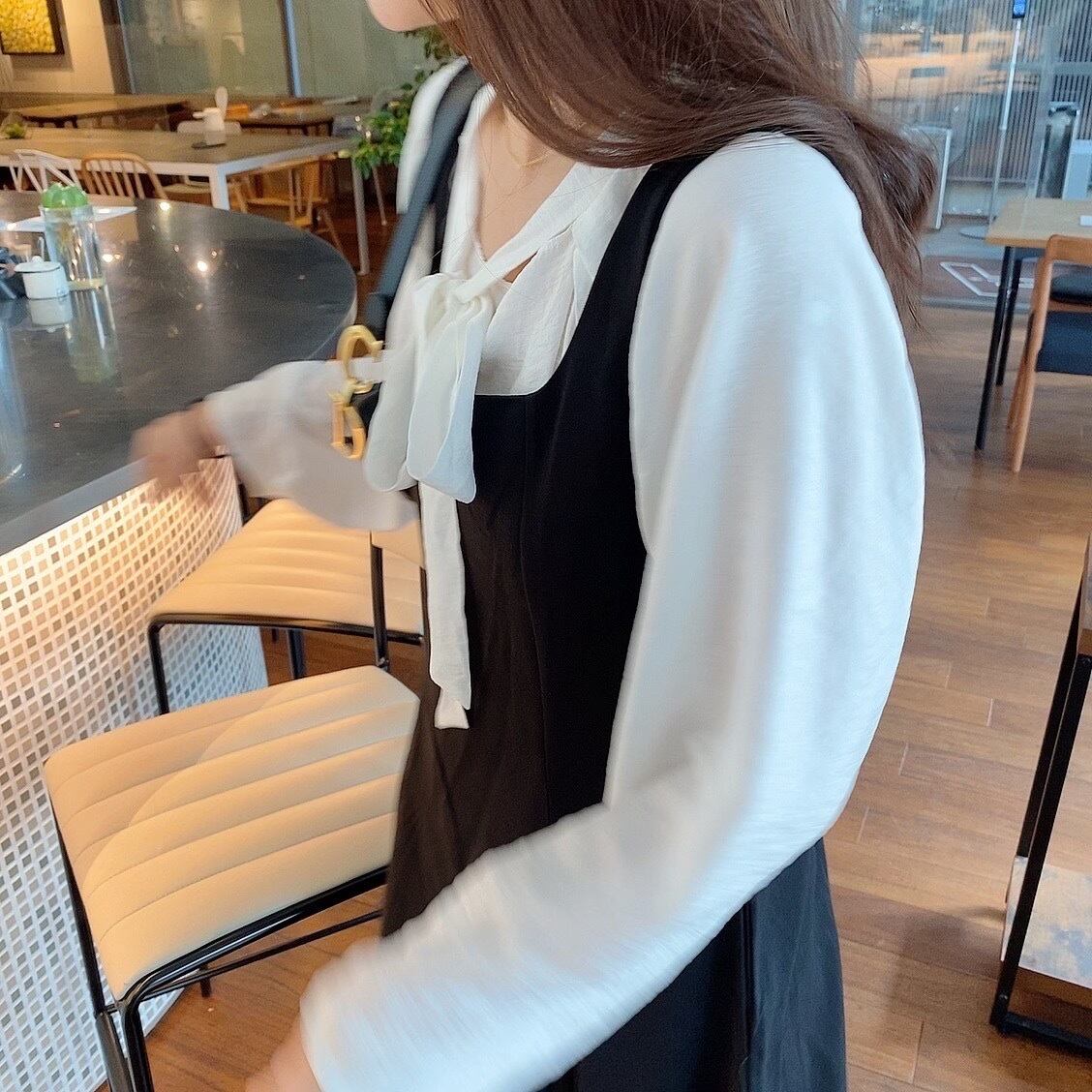 ボウタイ付きで結んでリボンにしてフェミニンスタイルはもちろん、そのまま垂らしてこなれ感を出して頂いても○