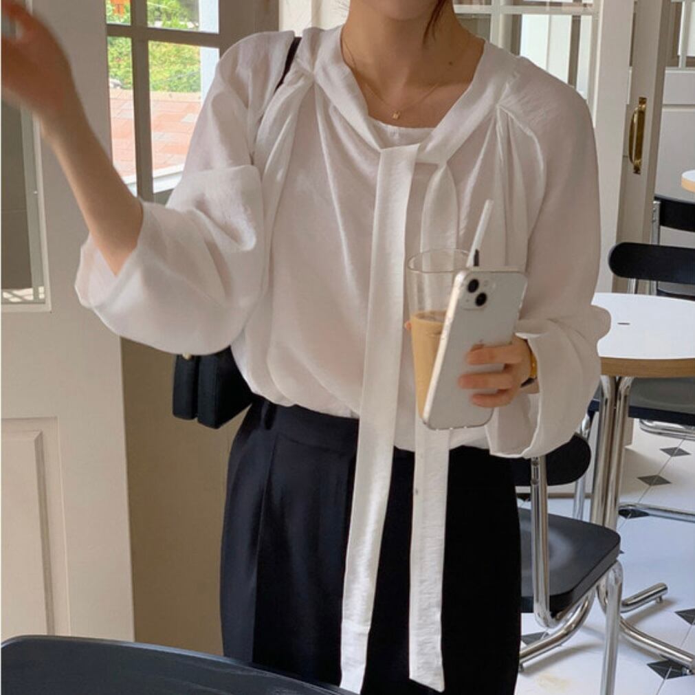 Ribbon tie blouse / white (10月上旬〜中旬頃発送予定)