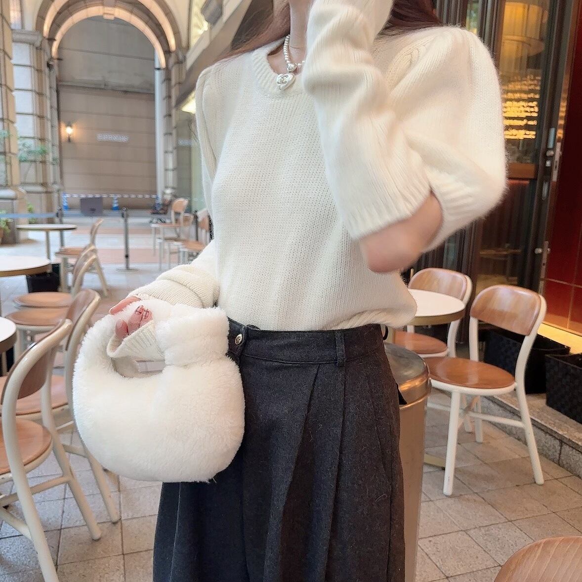 上半身のラインを華奢に見せてくれるパフ袖と骨盤までの着丈感で、全体的なボディ比率を綺麗に演出してくれます。