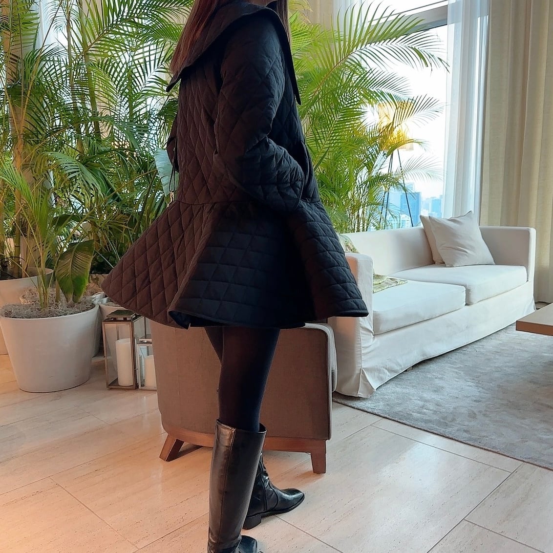 Peplum quilting coat / black (即納商品)