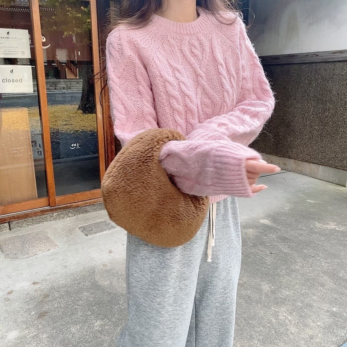 2種類の異なるケーブル編みで立体感のあるデザインがかわいいニットトップス。