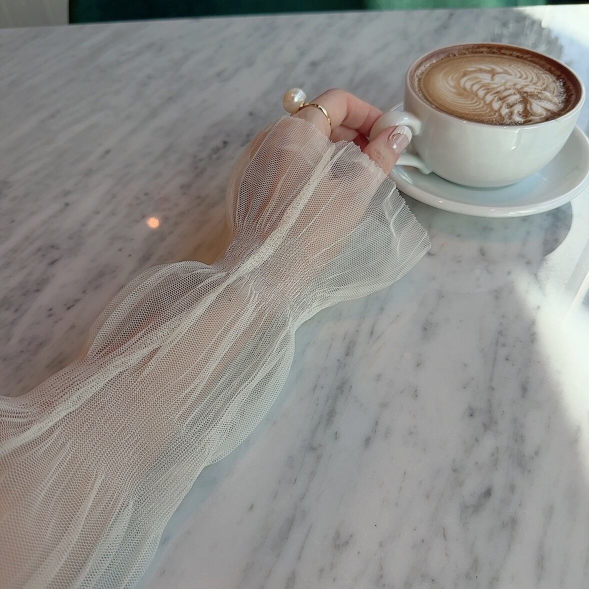 細めのゴールドのラウンドリングも女性らしいポイントです。