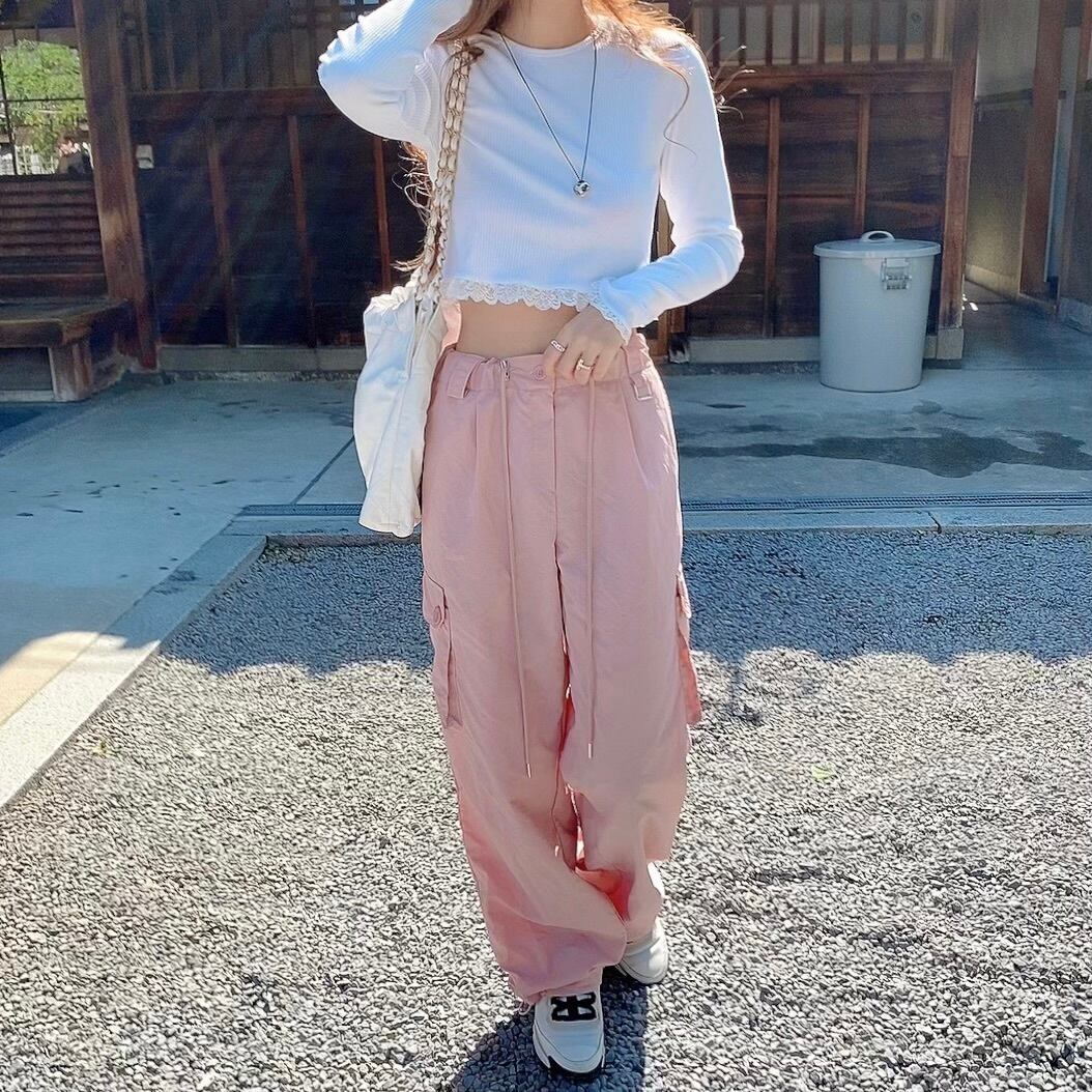 今年の夏に必須のトレンドアイテムであるナイロンカーゴパンツ。