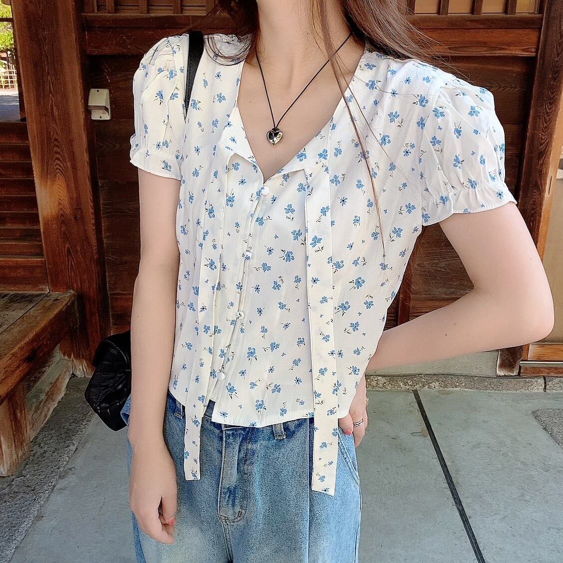 ヴィンテージ感漂う若々しいフラワーパターンで初夏の香りをいっぱい詰め込んだブラウス。