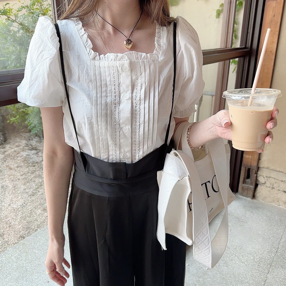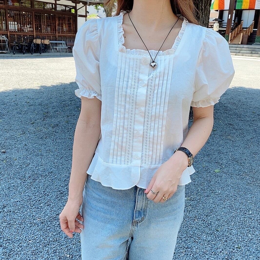 小ぶりなパフスリーブが可愛いコットンブラウス。