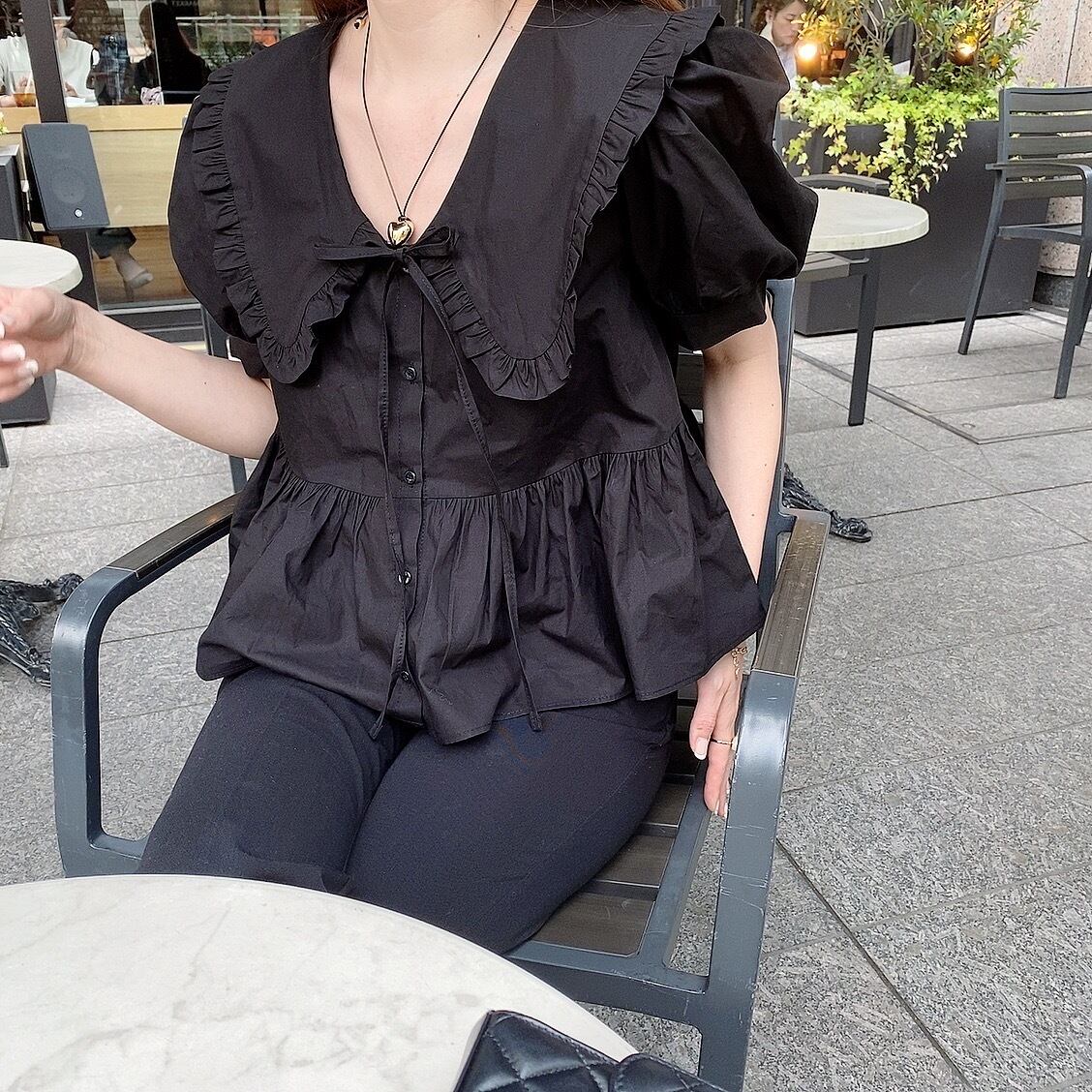 Bigcollar ribbon blouse /black (6月中旬頃発送予定)