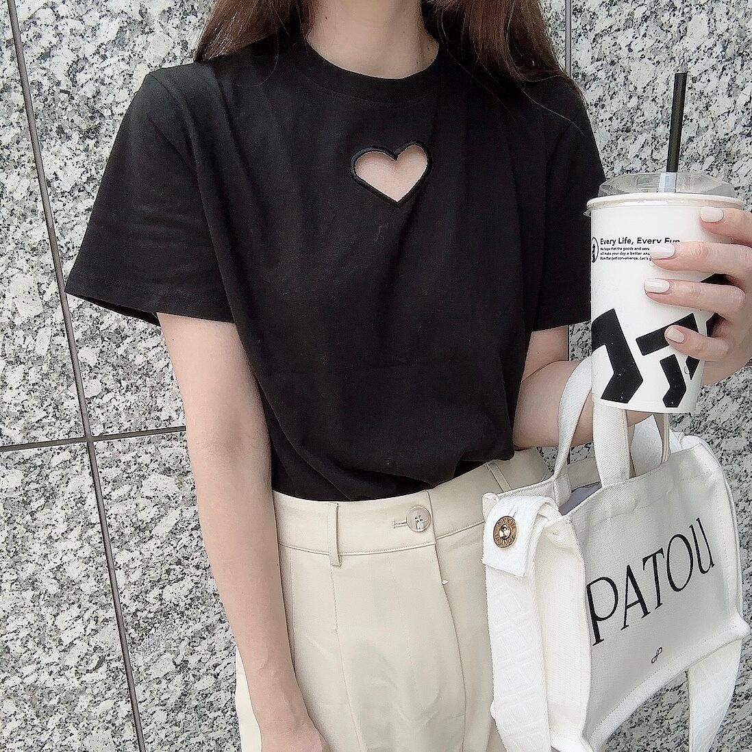 Heart cutout tee / white, black (7月中旬頃発送予定)