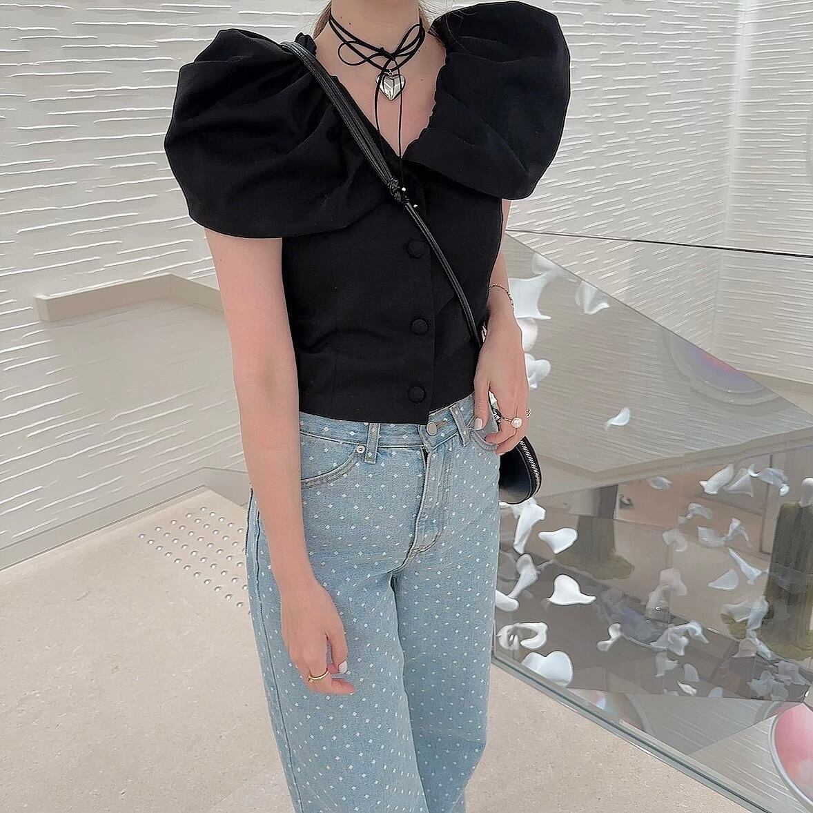 肩からふわっとパフが被さるデザインなので気になる二の腕もすっきり隠れるのも嬉しいポイント。