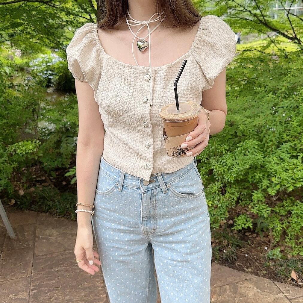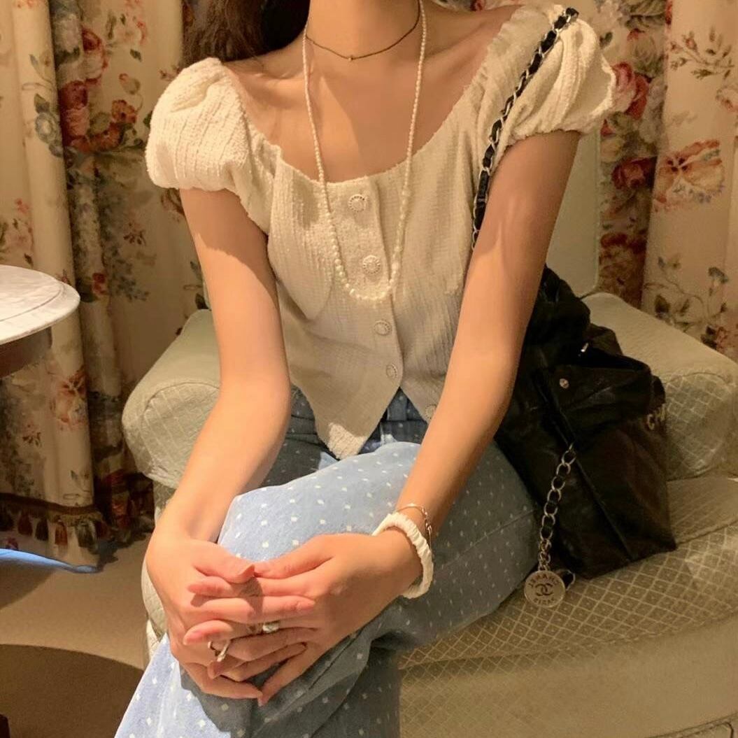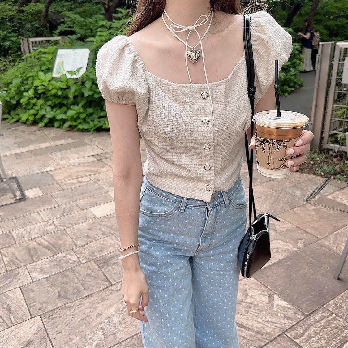 小ぶりなパフスリーブが大人かわいいを演出してくれます。