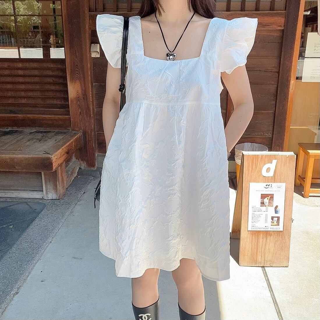 Aラインのシルエットが体型カバーしつつ、フェミニンで女性らしい印象に。