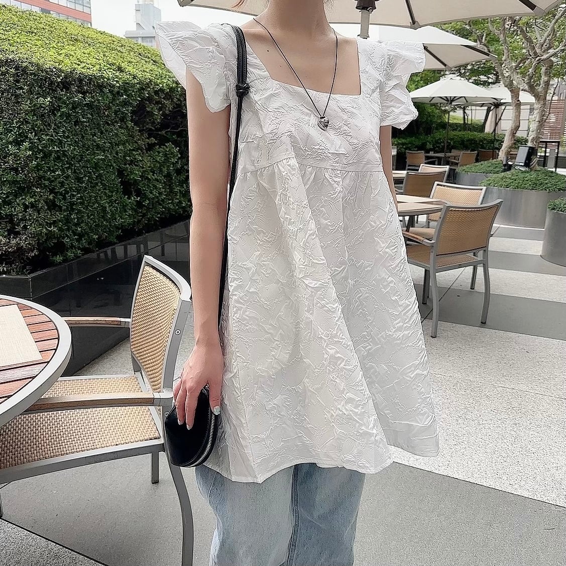 エンボス加工の生地がさわやかな表情を見せてくれ、シンプルなデザインながら主役級の一枚です。