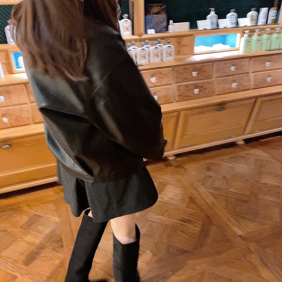 ハーフな着丈はヒップラインをほどよく隠してくれ、体型カバーしてくれるのも嬉しいポイント。従来のレザーアウターに比べると軽量なので、デイリーに使いやすいです。