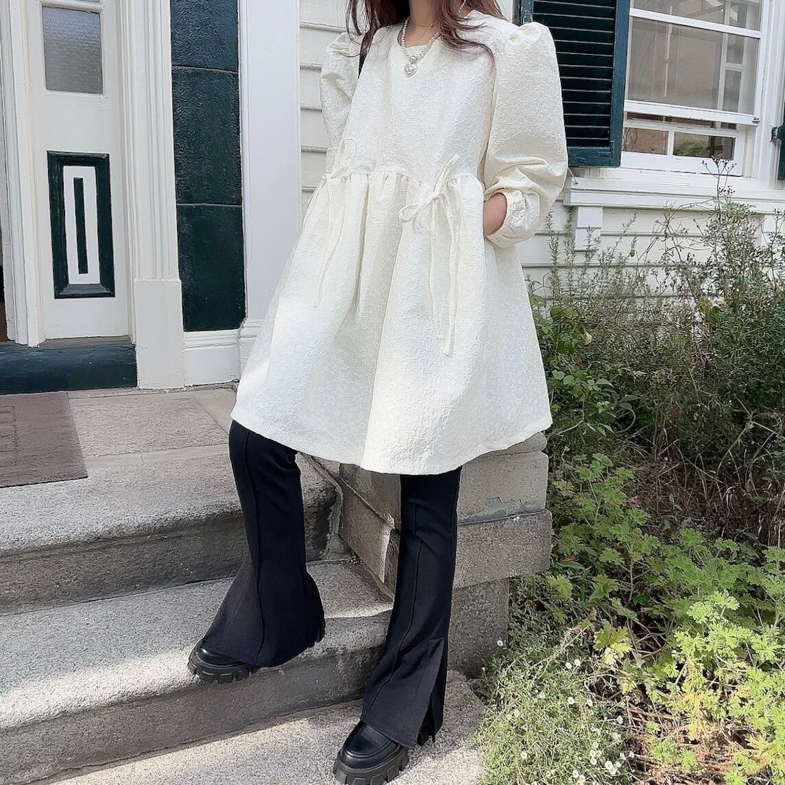 また切り替え部分と袖には細リボンのデザインが施されており、さりげなくポイントとなっております。