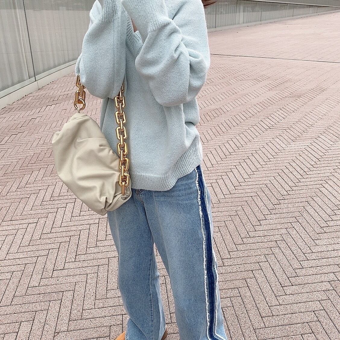 深めのVライン開きが、ネックラインを綺麗に見せてくれ、小顔効果も。余裕をもったルーズなフィット感が、抜け感をプラスしてくれ女性らしさを演出。華奢見えする薄手のニットですが、アルパカ素材なのでしっかり温かいのも嬉しいポイントです。