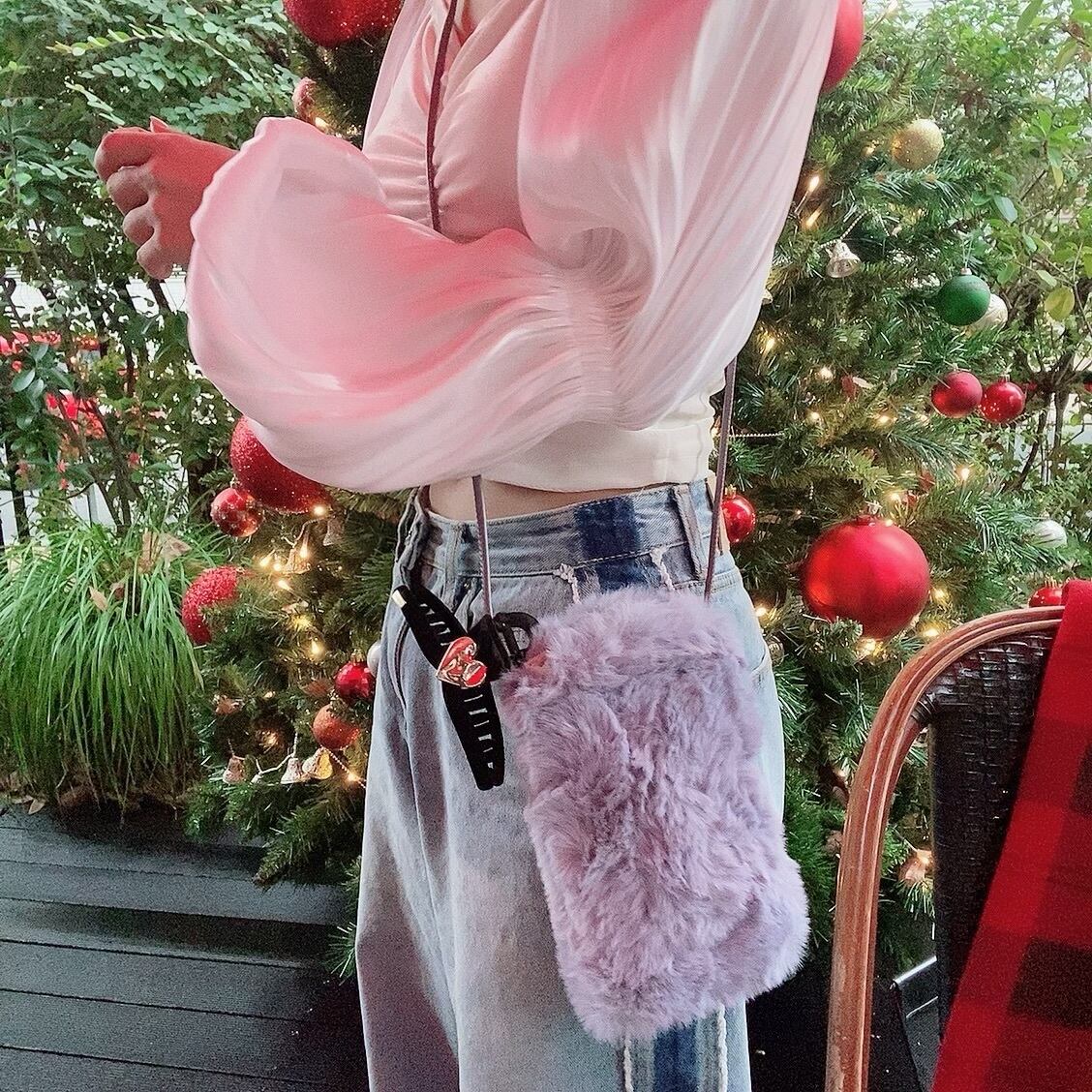 フロント部分はベロア、ボリュームのある袖は艶感のある素材となっており、動くたびに光沢感が立体的に見えモードな雰囲気に。