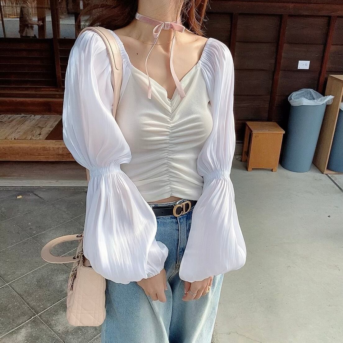 Velvet blouse / white (1月上旬〜中旬頃発送予定)