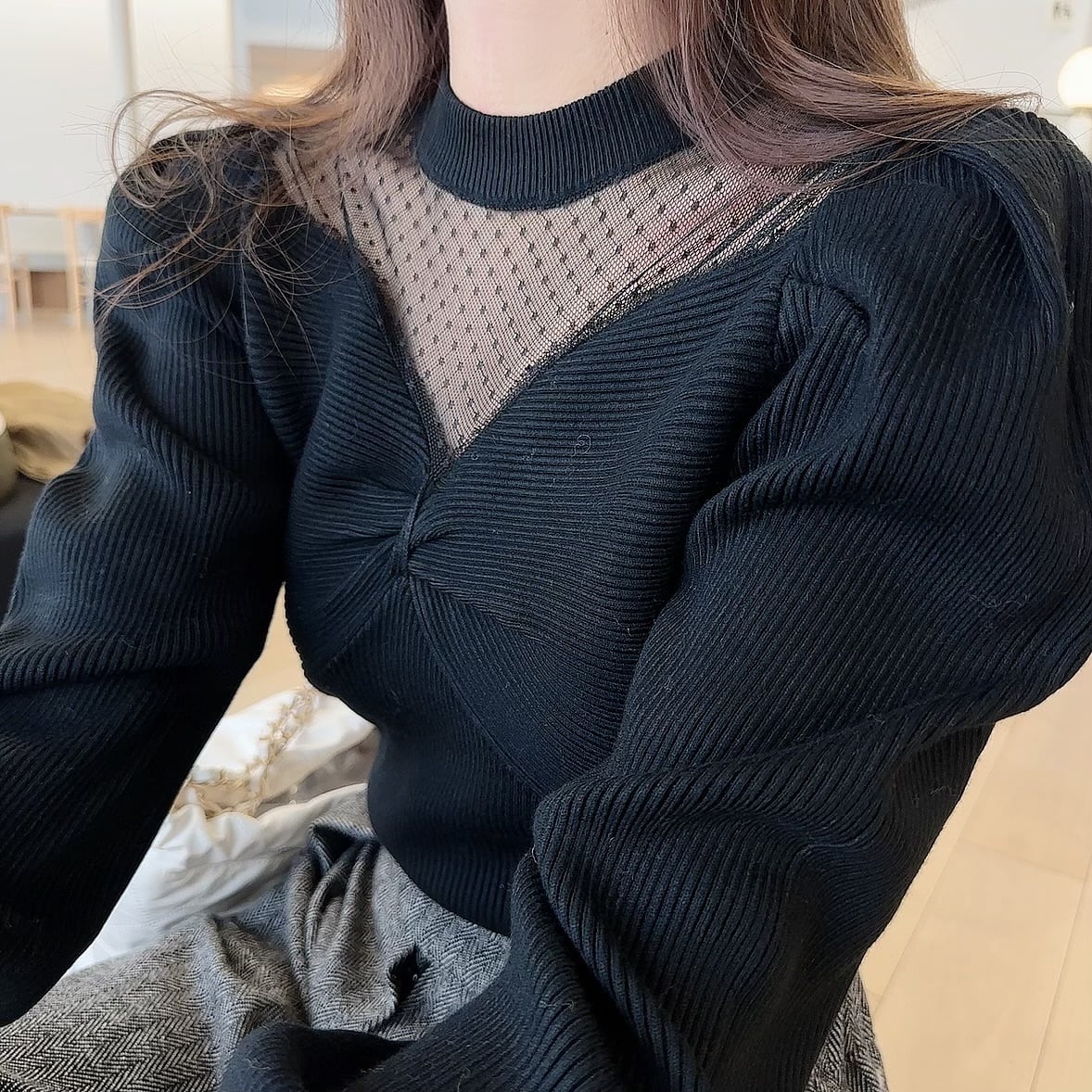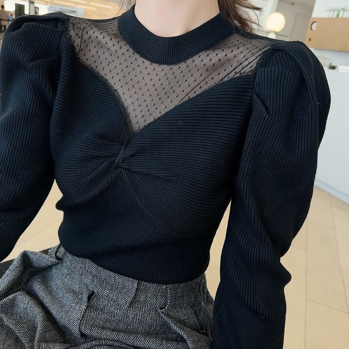Dot sheer puff knit / black (1月上旬〜中旬頃発送予定)