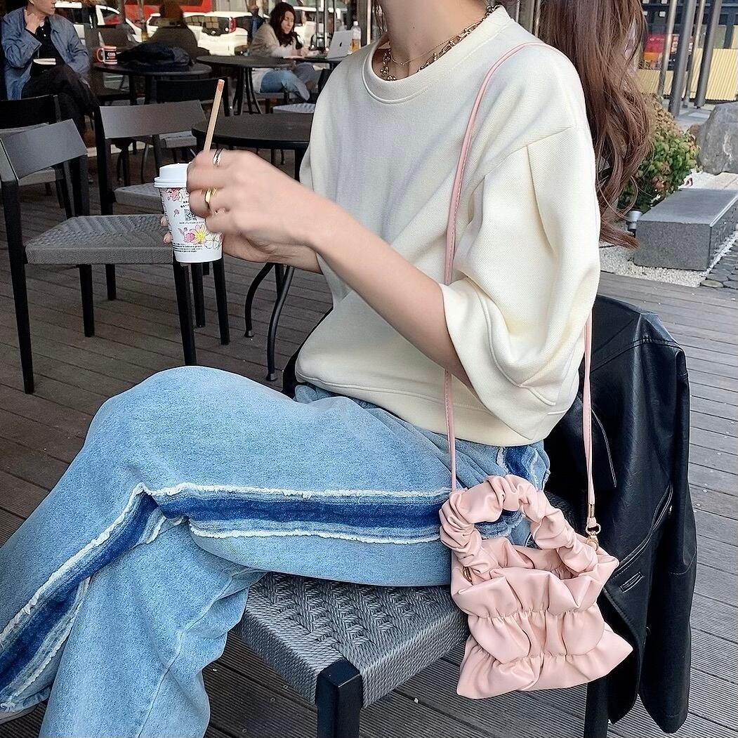 シンプルにデニムと1枚で合わせても華やかに決まる一着。カジュアルな中にもすっきりとした女性らしいヘルシーな印象をプラスしてくれます。