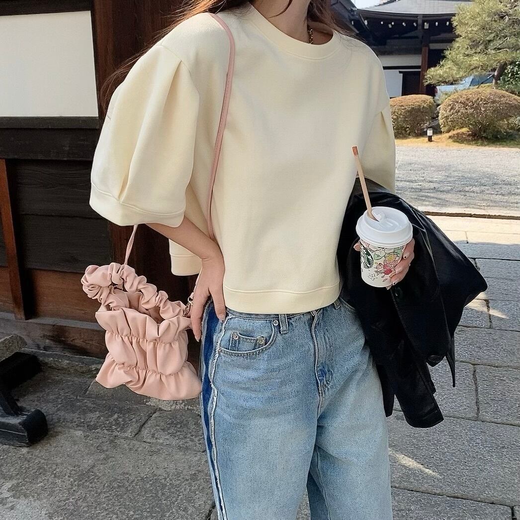 ボリュームのあるパフスリーブがポイントのスウェットtee。