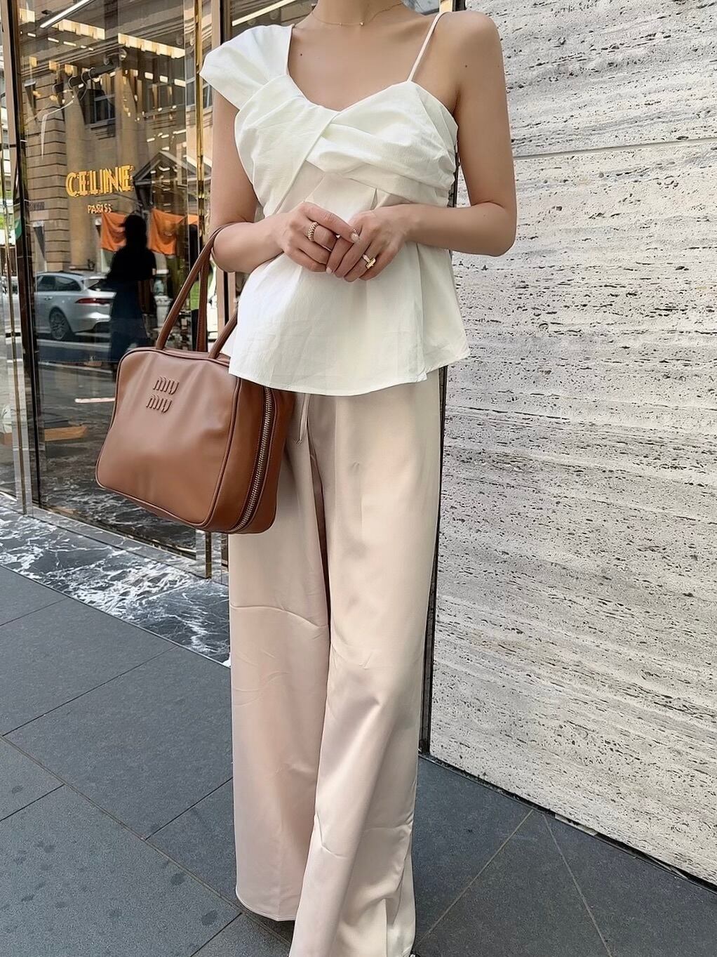 ショルダーもアシンメトリーになっており、モードな魅力をプラス。胸下の切り替えからギャザーを施し、ふんわりしたシルエットで愛される女性像を叶えてくれます。