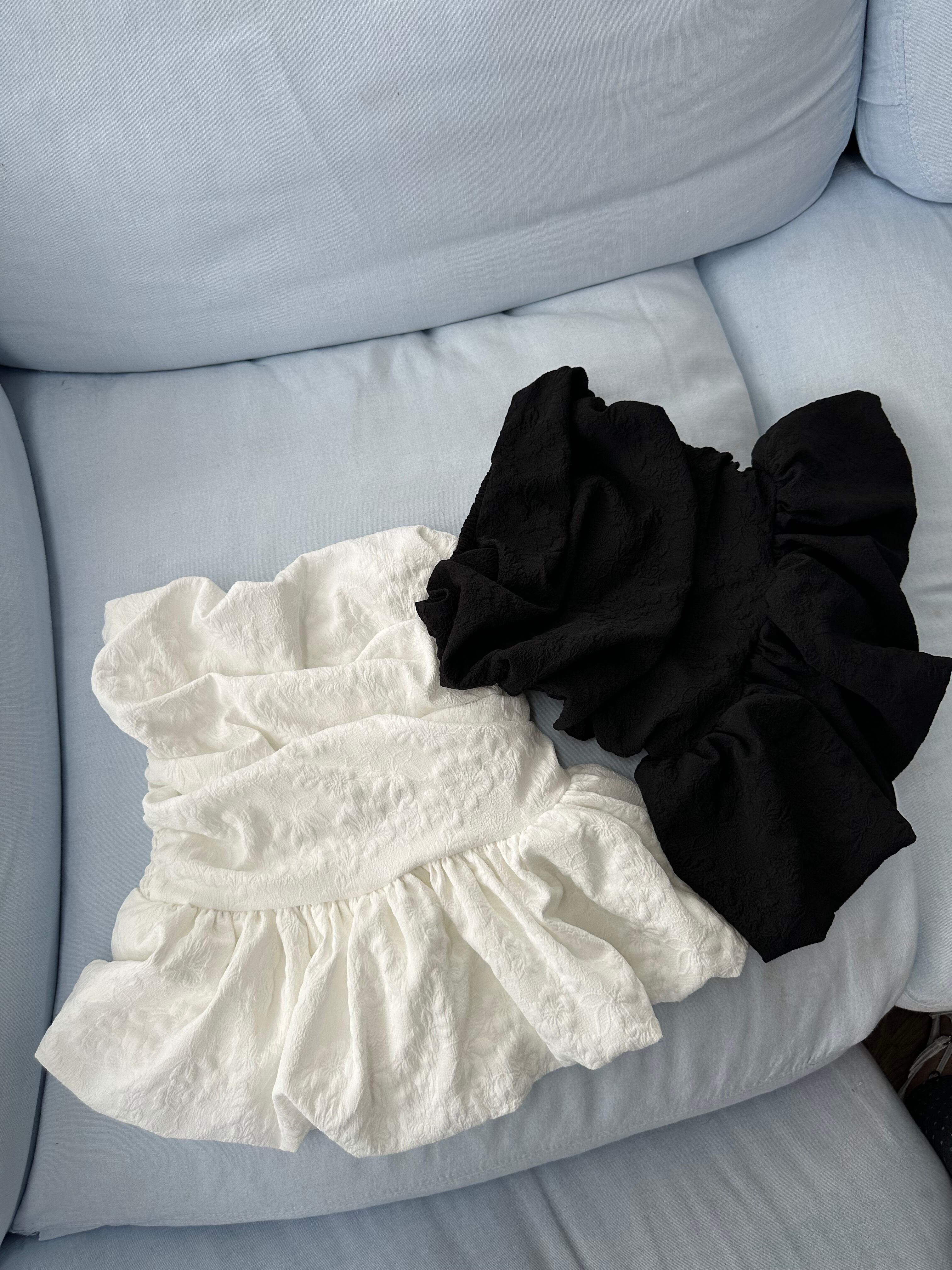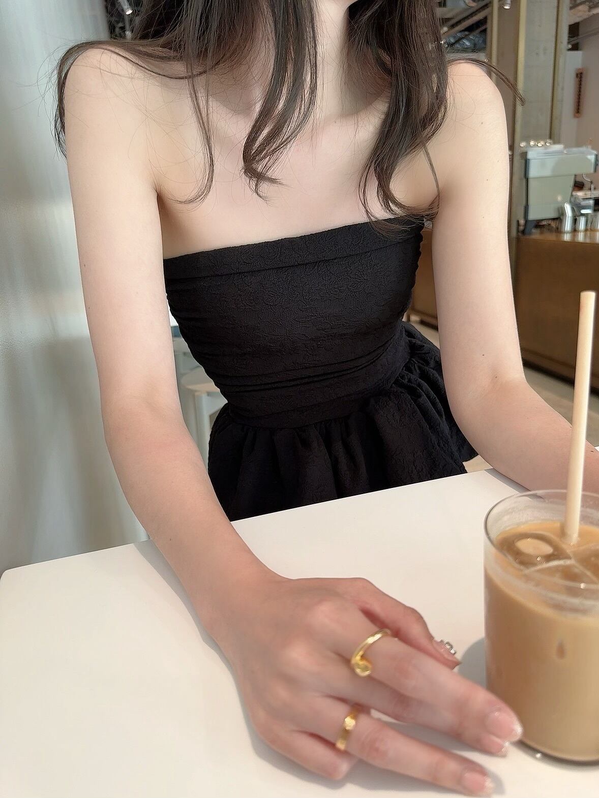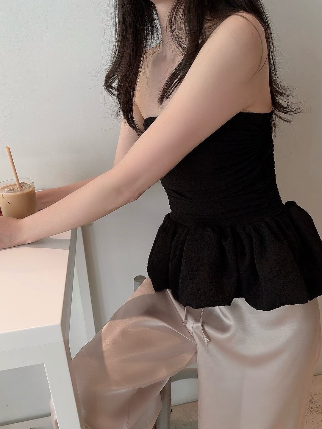 ペプラムシルエットが女性らしいチューブトップス。バルーンの裾でふんわり柔らかく広がる形がとってもキュート。