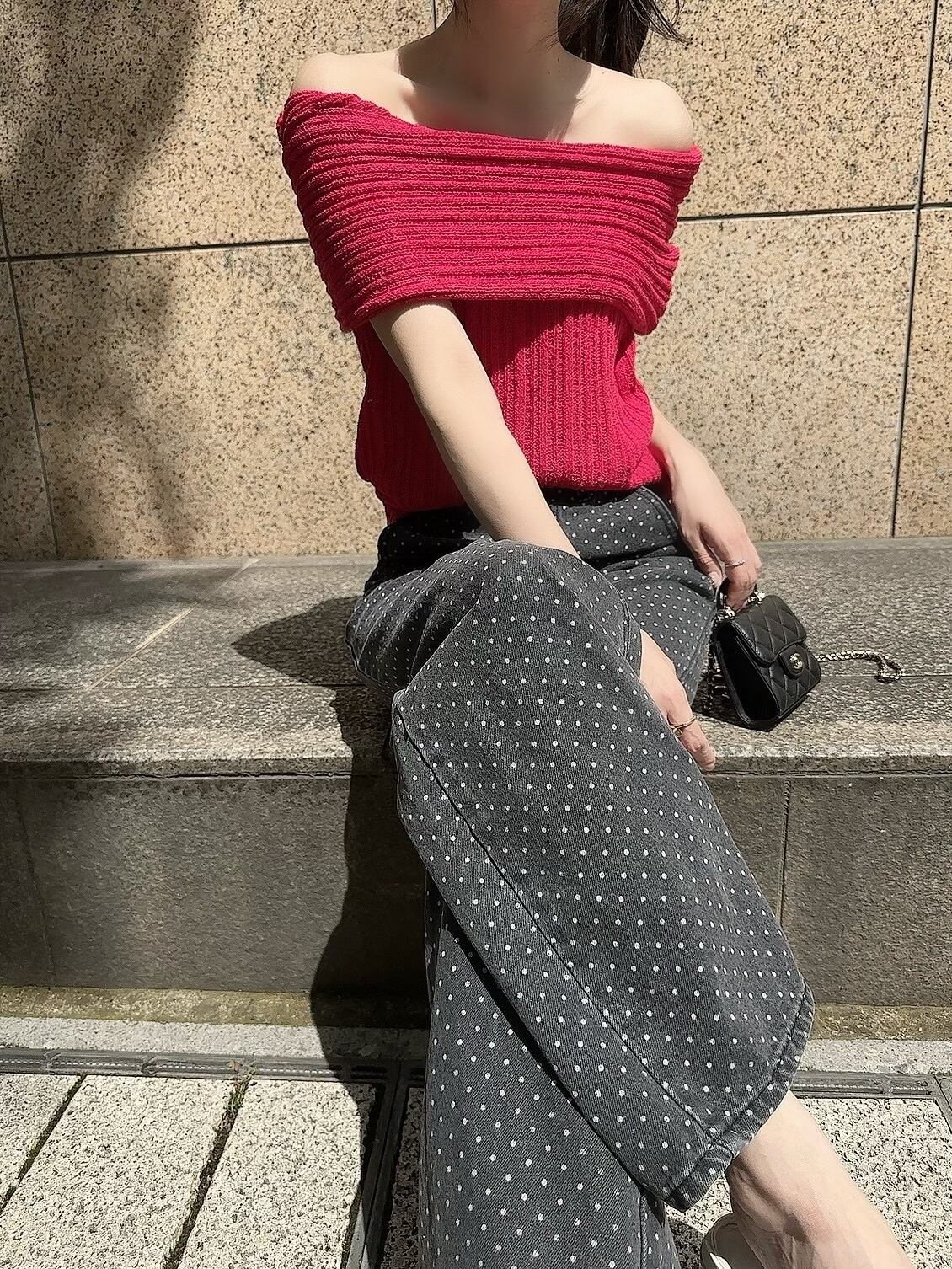 Offshoulder summer knit / red(5月下旬〜6月上旬頃発送予定)