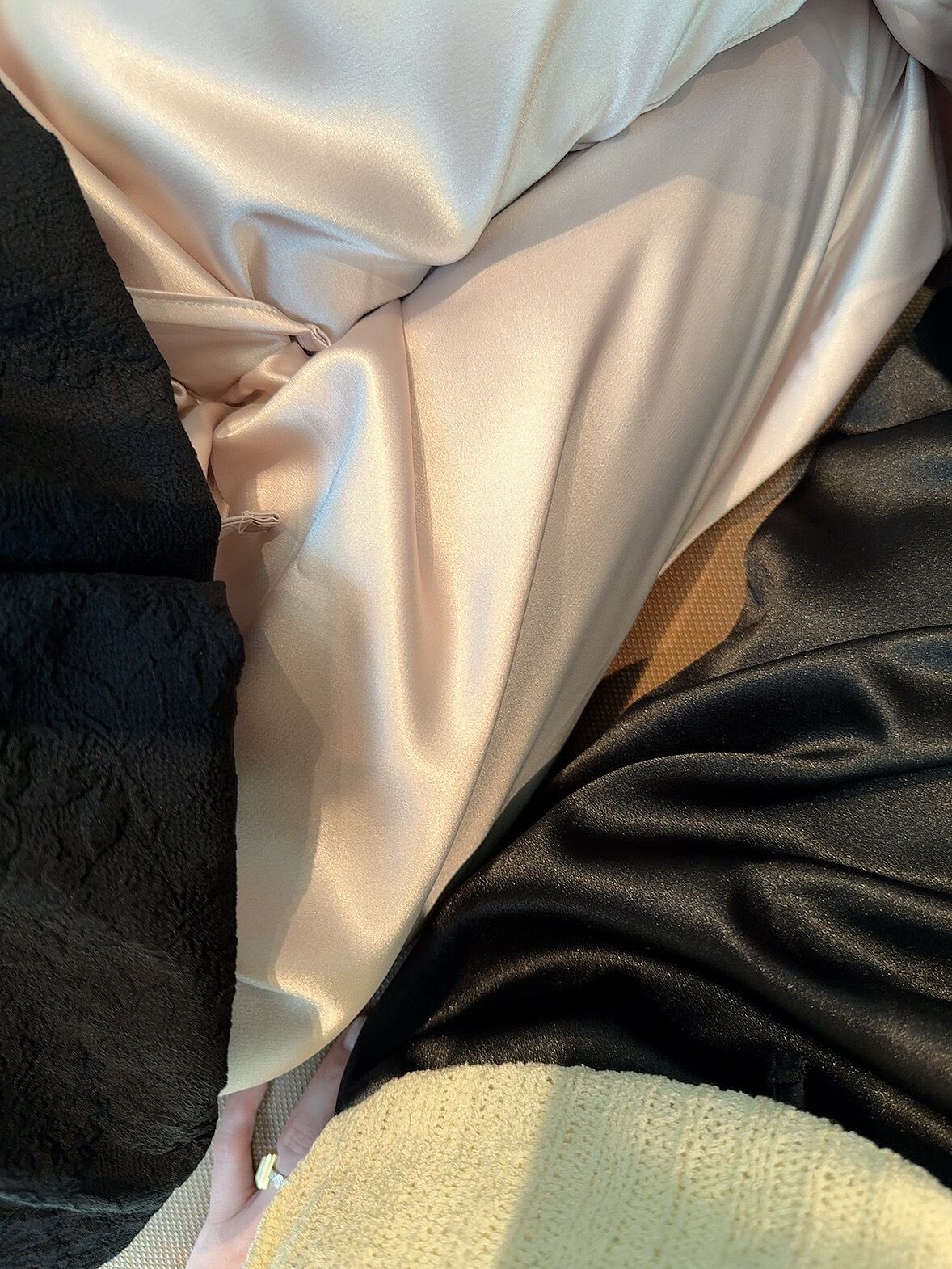 なめらかな肌触りでとろみのある生地が上品なスタイリングへと導いてくれます。