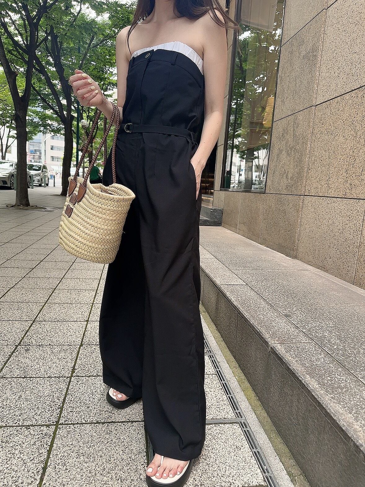 ヒップまわりやパンツ部分にはゆとりがあり、体のラインを拾わず締め付けもないので、リラックスした着心地で着れて、真夏でも楽に可愛くコーデが完成します。