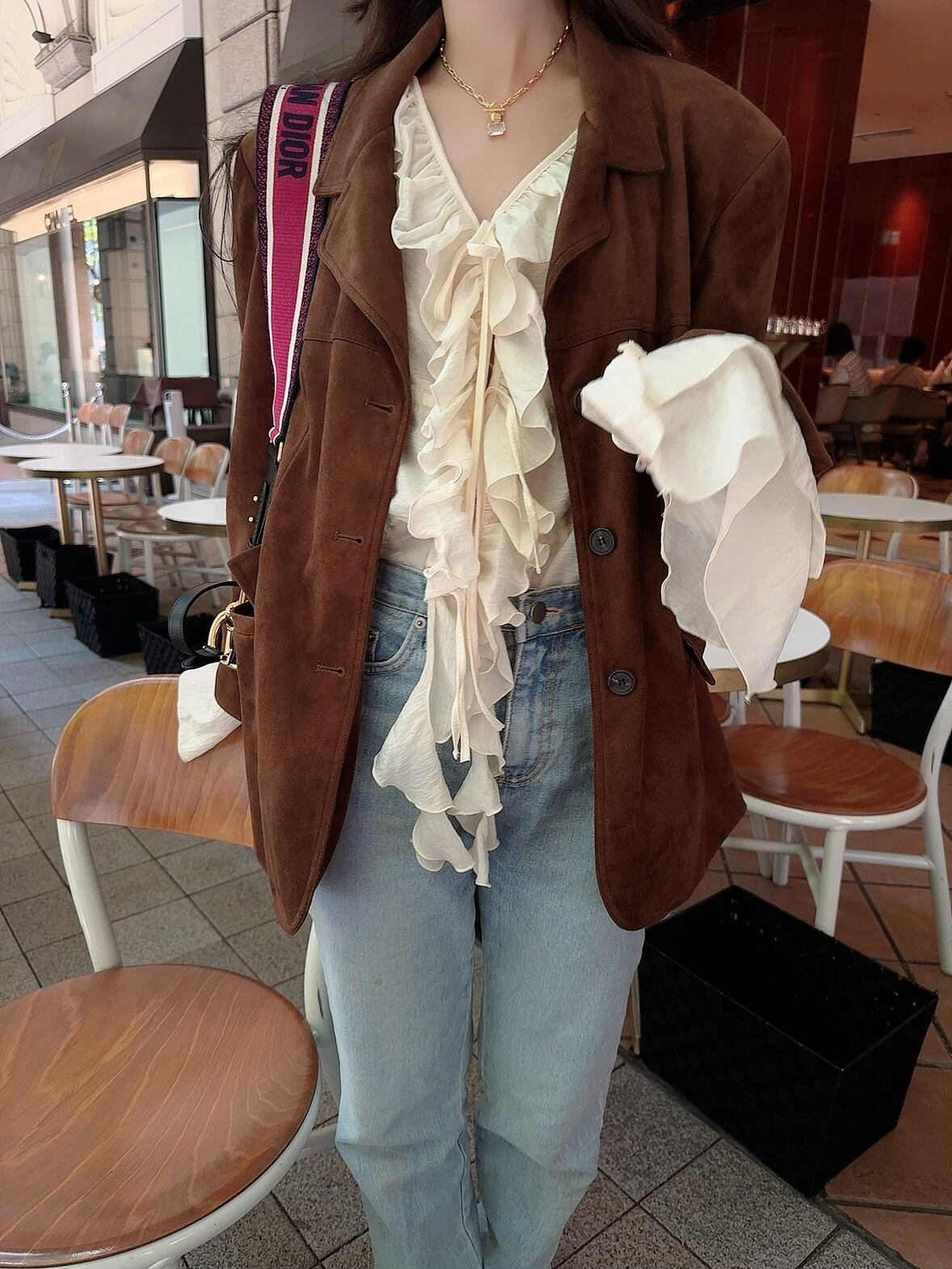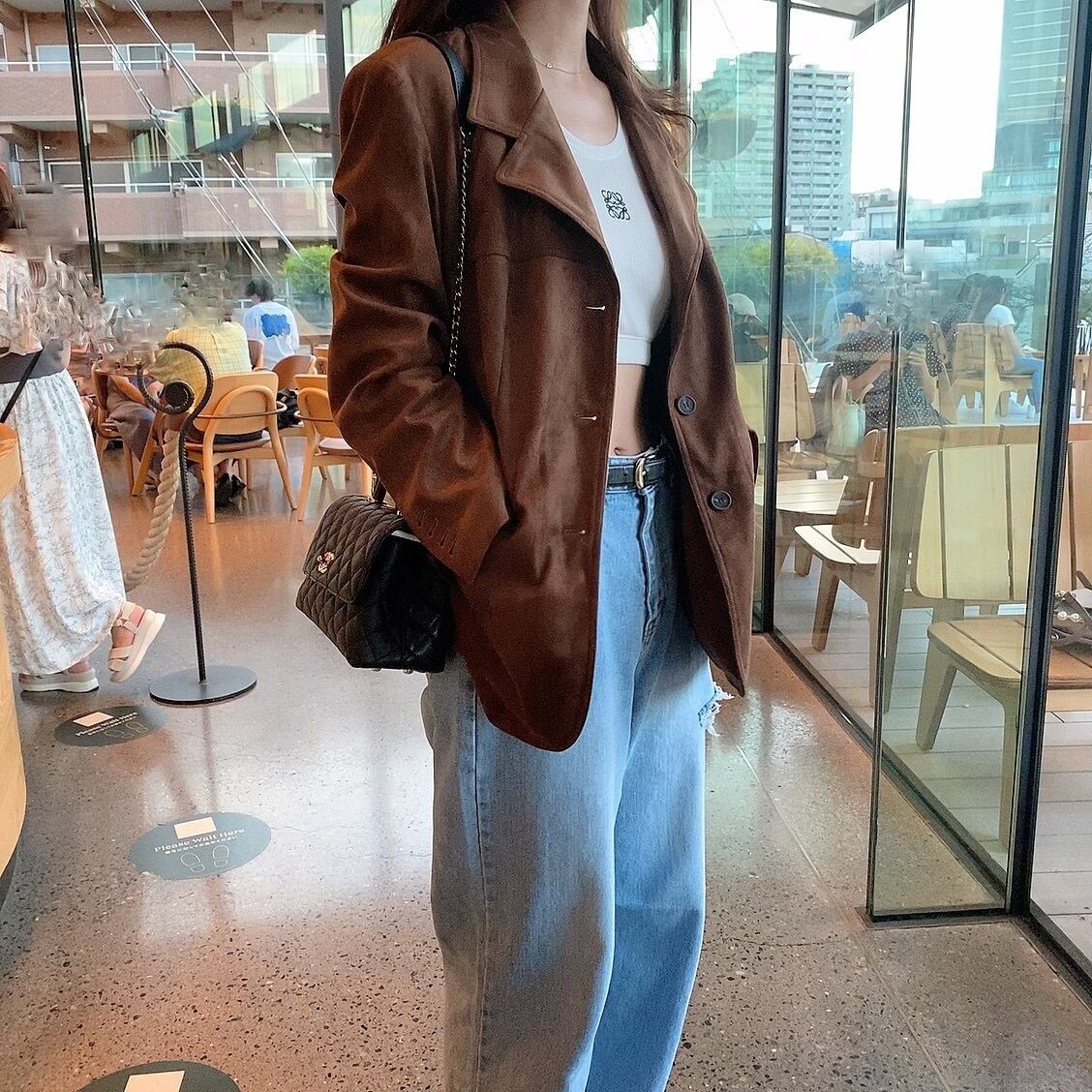 深みのあるブラウンのカラーが、シンプルなTシャツやデニムスタイルの上から羽織るだけで一気に秋ムードを高めてくれます。