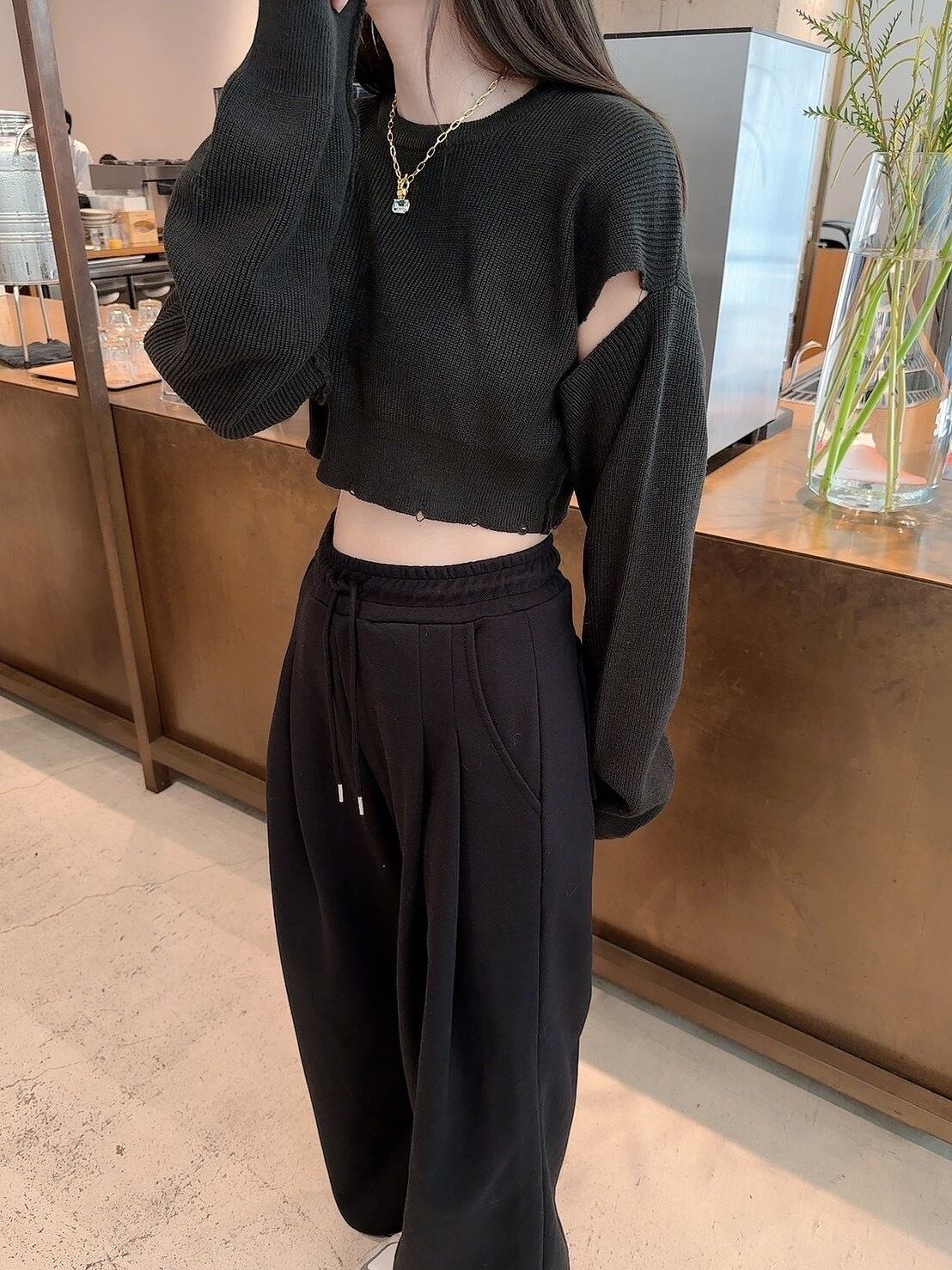 ストンと落ち感のあるワイドなスウェットパンツ。
