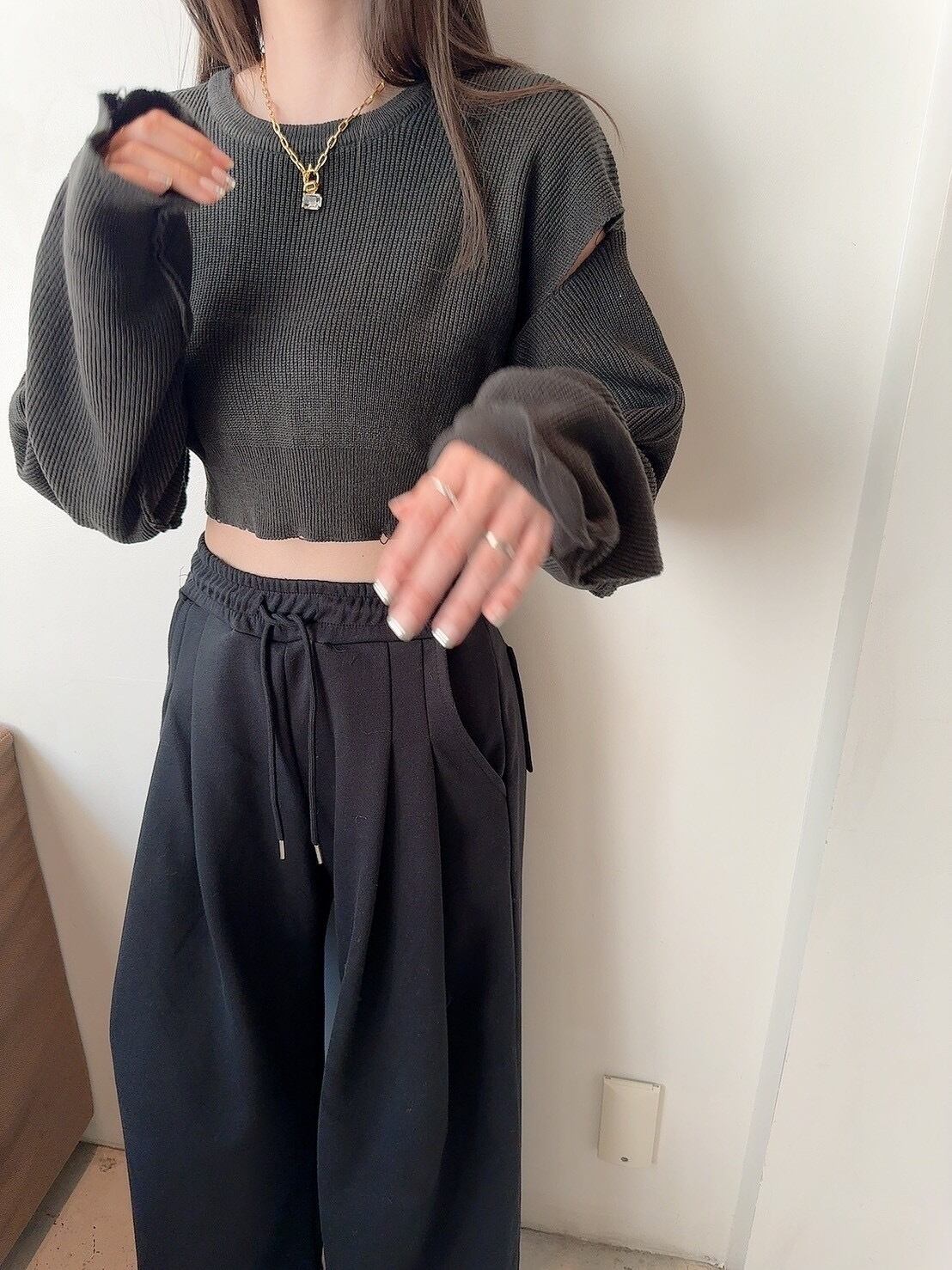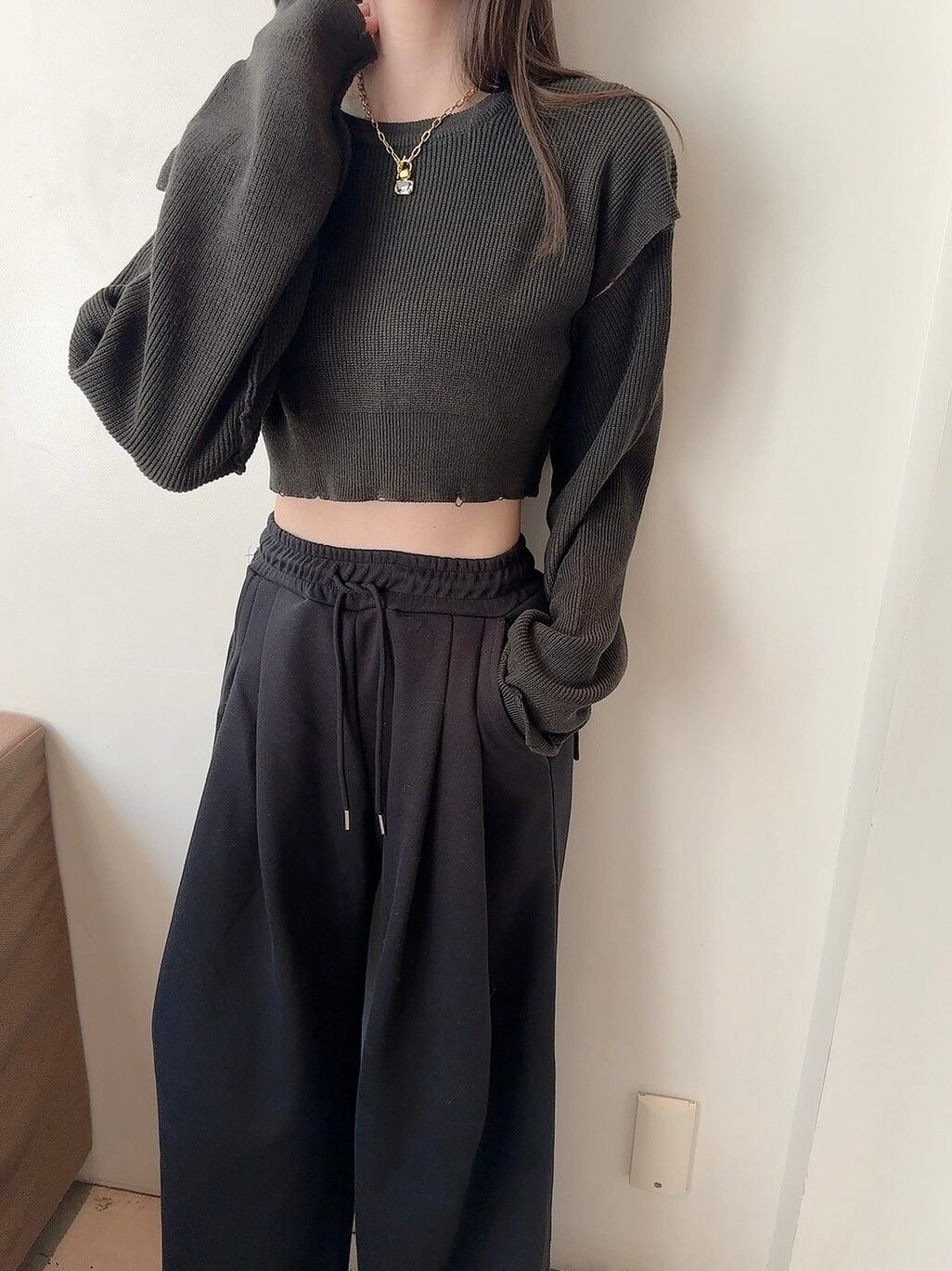 深めのタックが入っており、ラフなシルエットに立体感とドレープ感をプラスし美脚効果抜群。