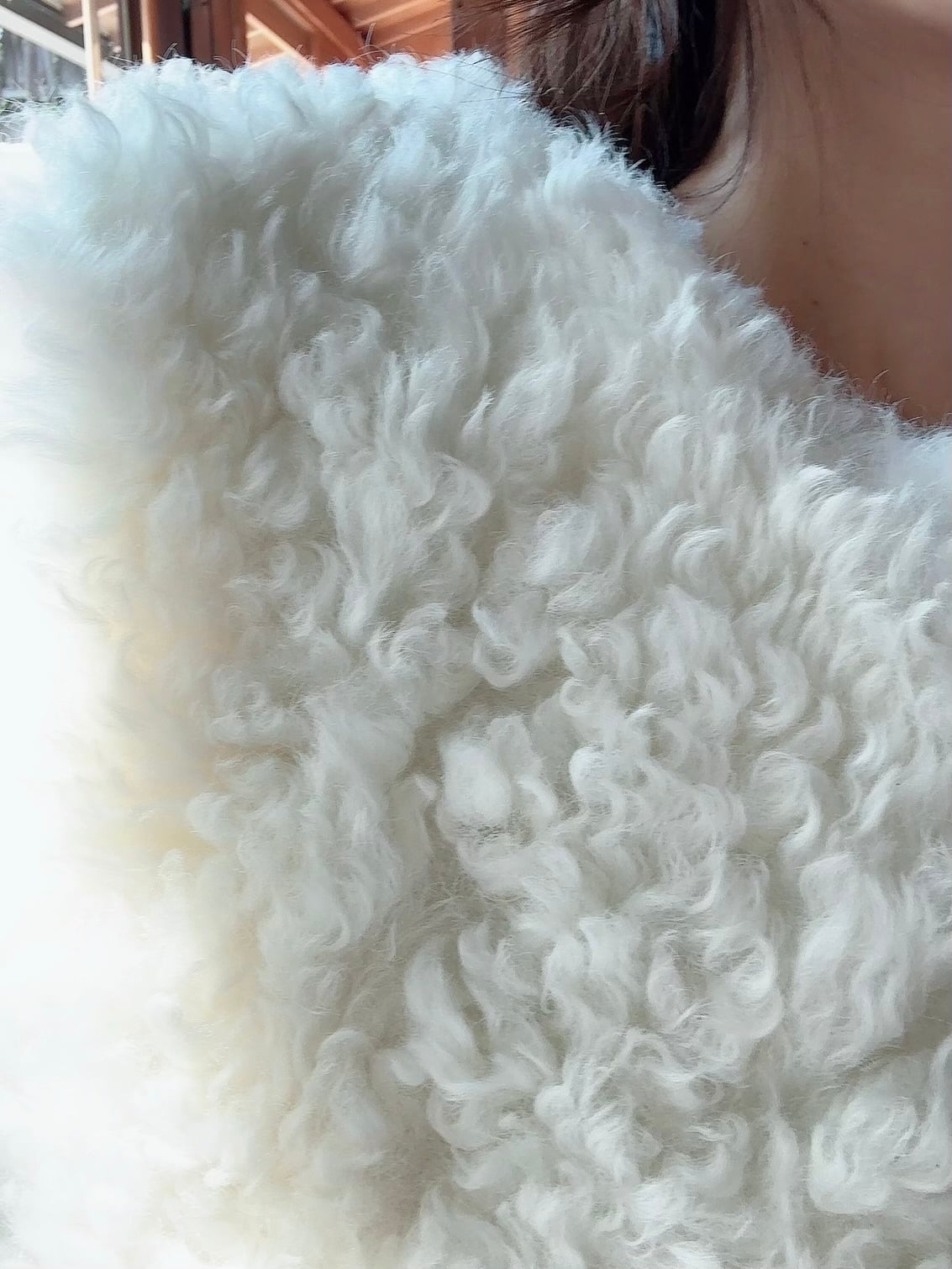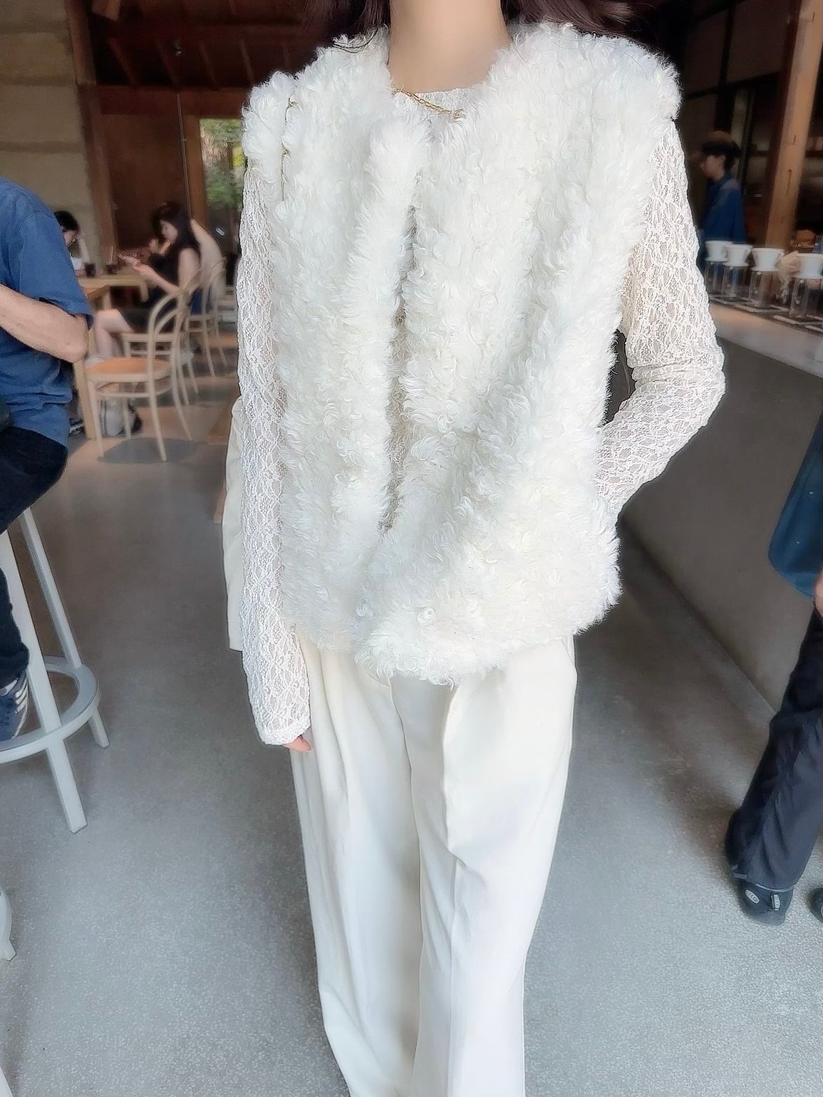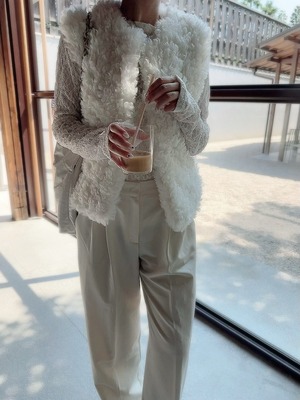 くるんとプードルのような毛並みが可愛い今年トレンドのエコファーベスト。しっかりとボリュームがある生地が、華奢に見せてくれる一枚。