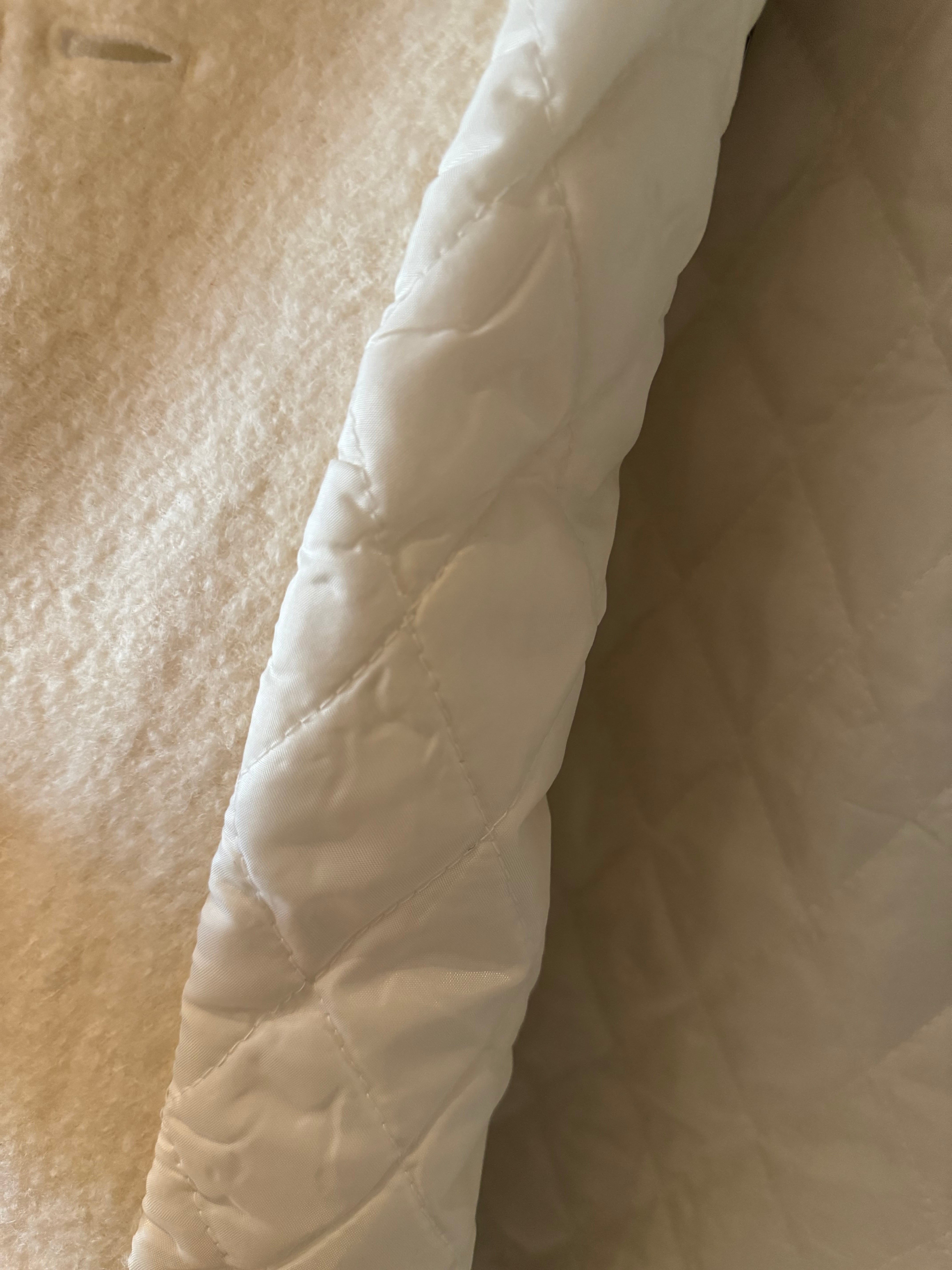 ウール100%を圧縮し、裏地はキルティングで軽い着心地ながらしっかり保温力もありこの冬重宝する一着です。